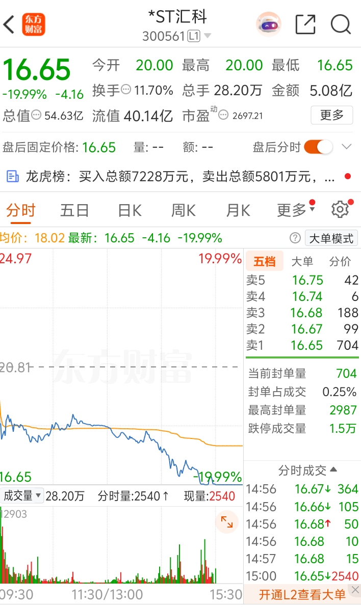 今天的走势在预料之中的预料之外,预料之中是跌10个点,是预料之中的,原因于近期的预摘帽股预告年报后,基本都是第二天以跌停收盘;预料之外的是今天跌停20个点的大长腿,洗盘过度!
