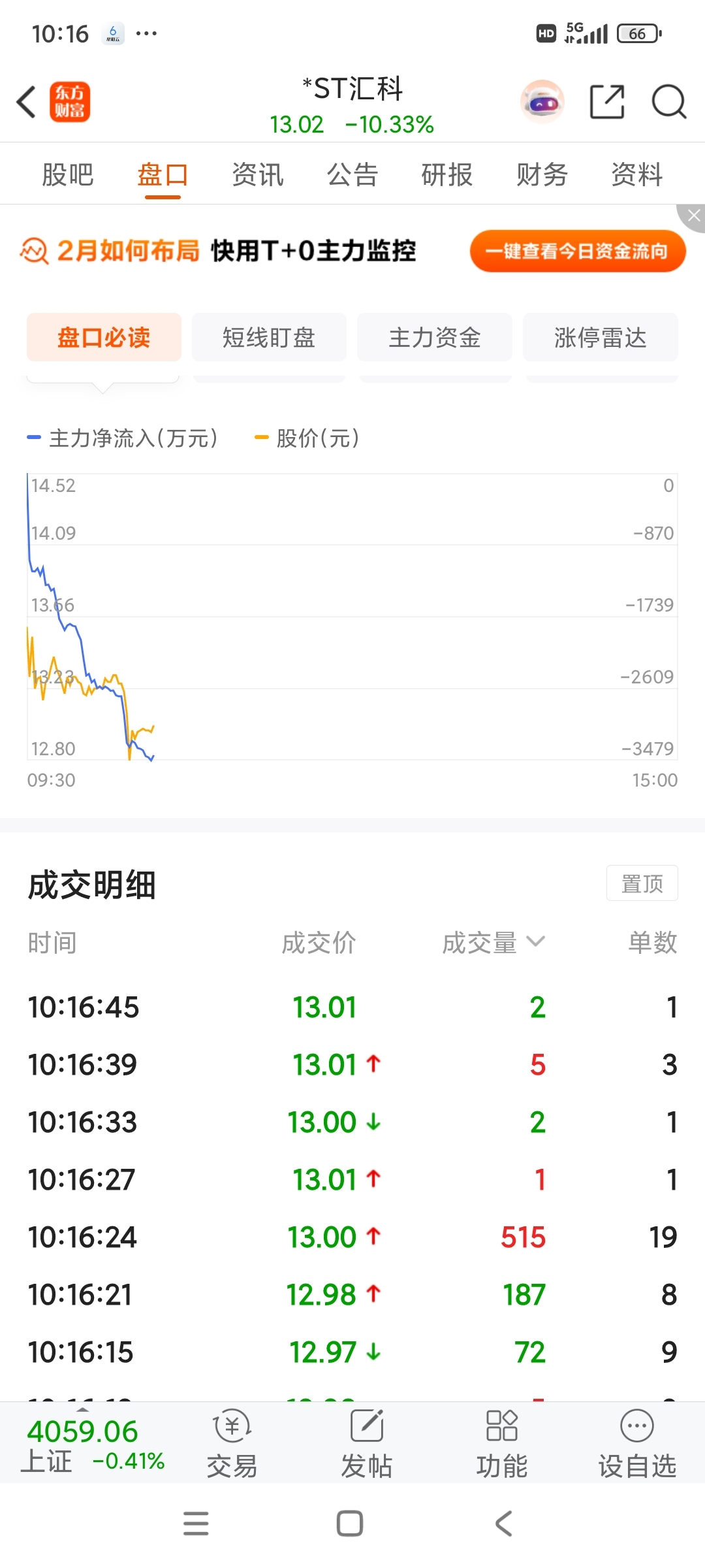 $*ST汇科(SZ300561)$ 主力砸盘砸了一个小时。主力资金开始拐头向上了。主力资金开始吃货了。