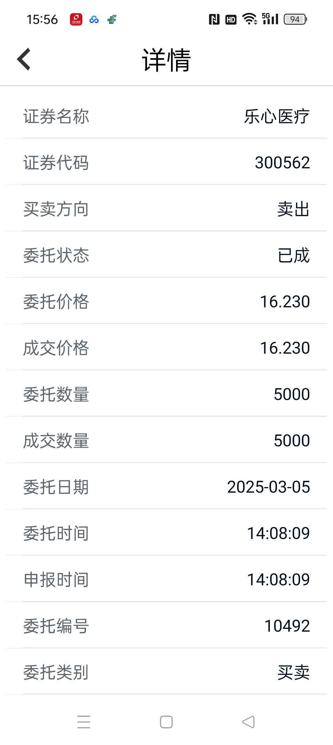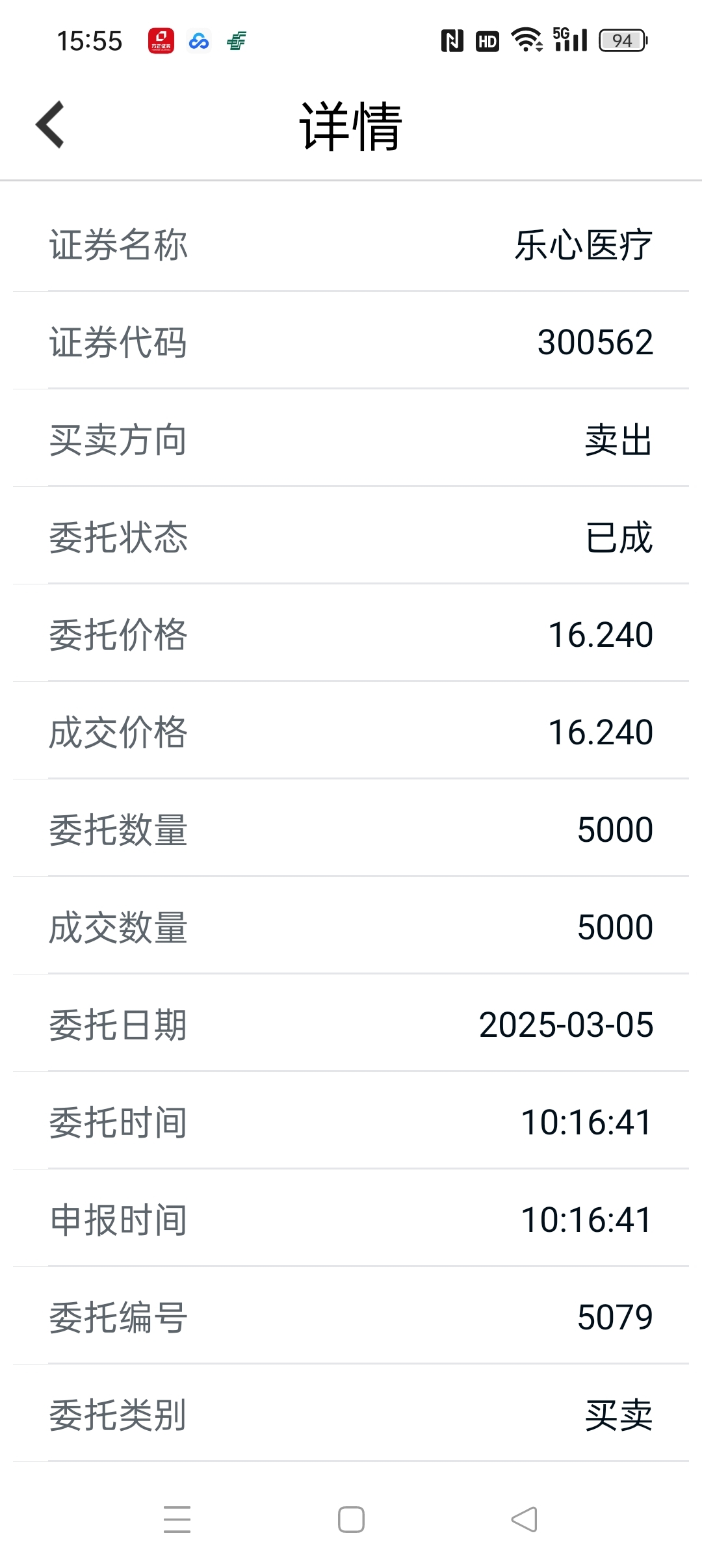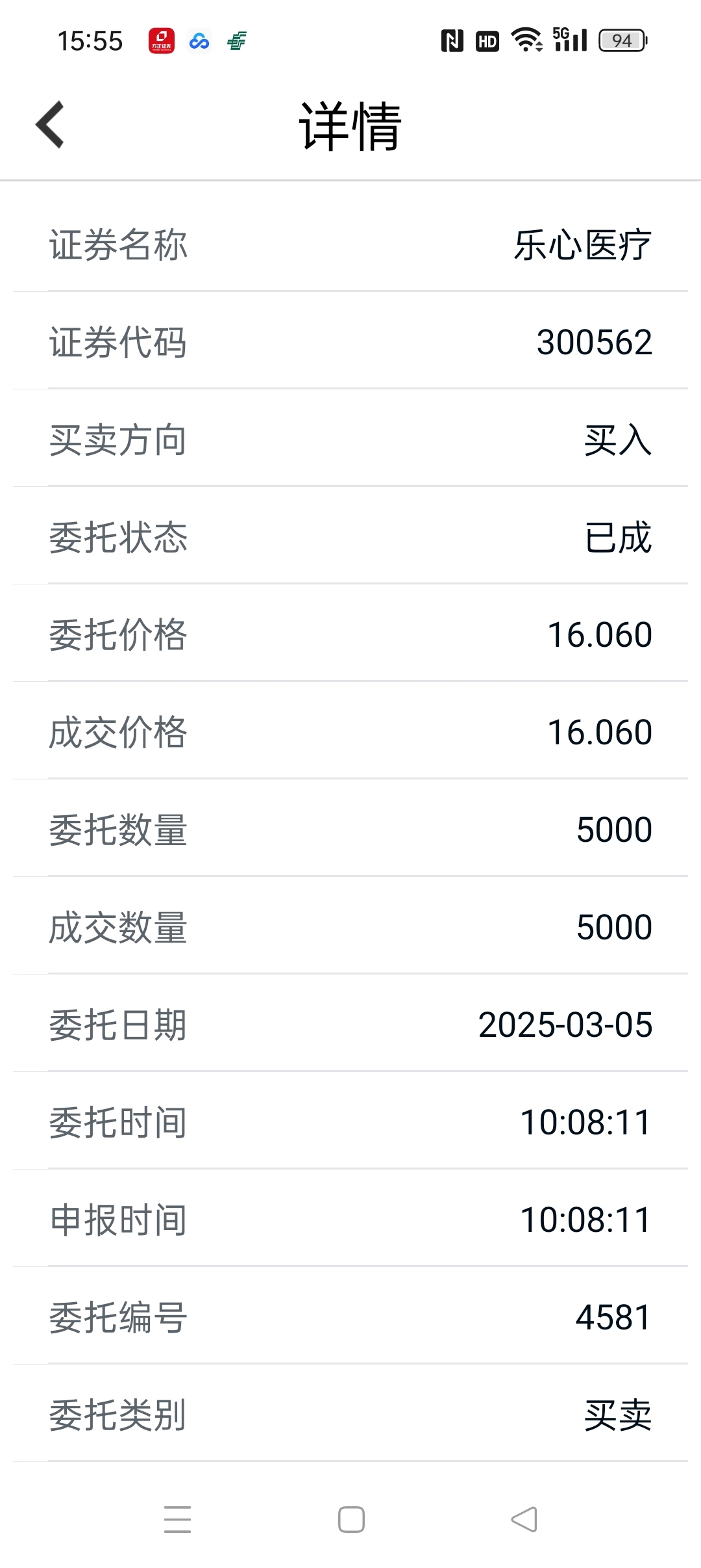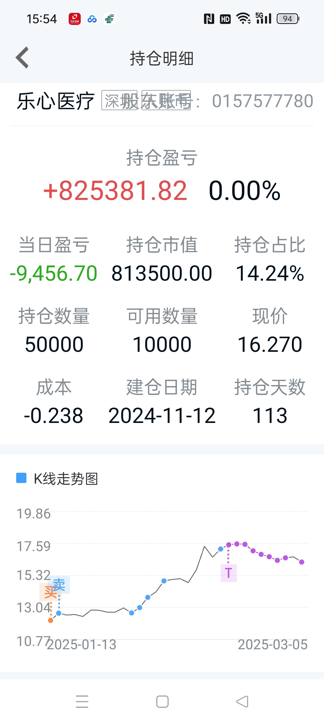 2025年3月5日:经过113天的持仓运作,乐心医疗五万股的府仓成本己降至负0.