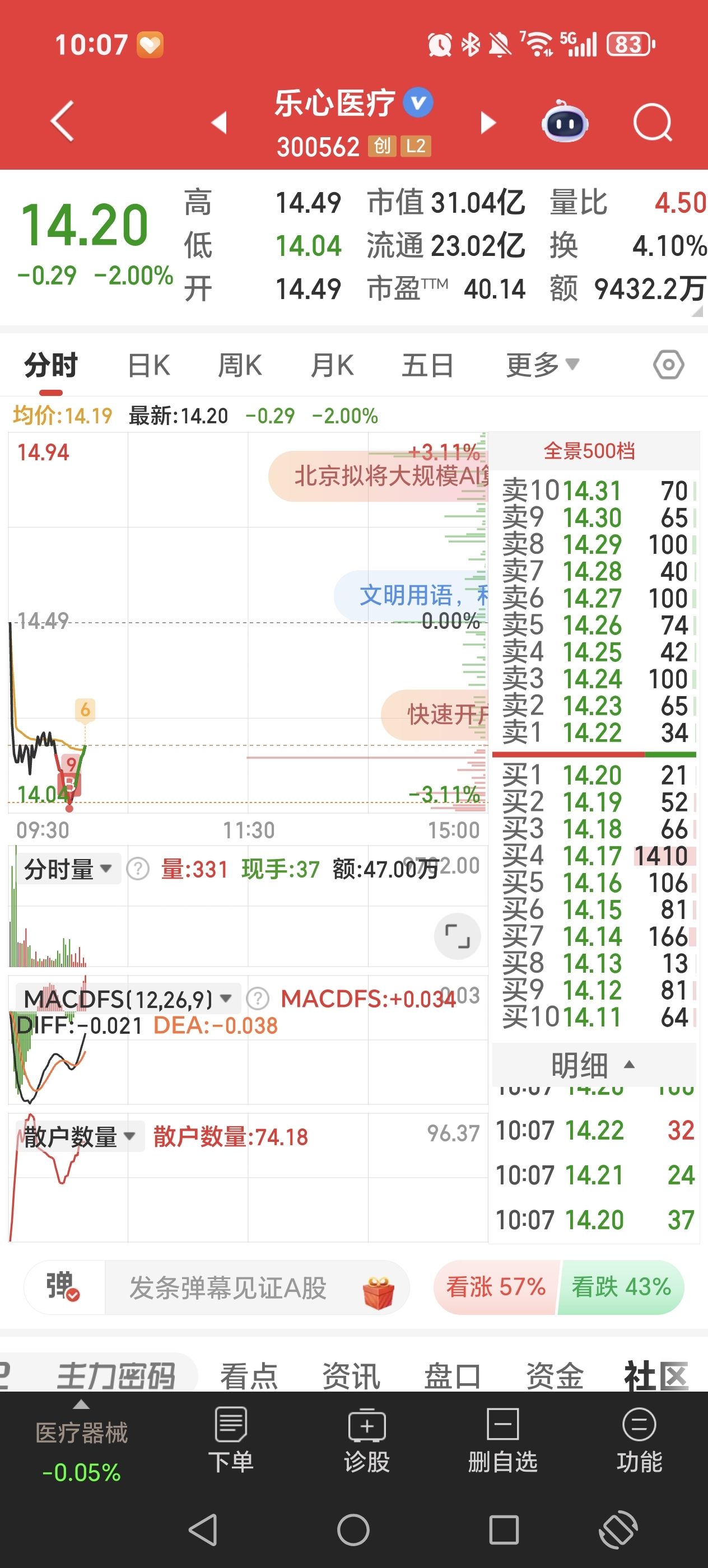 $乐心医疗(SZ300562)$ 鱼跃换乐心了,总觉得这个有资金在做