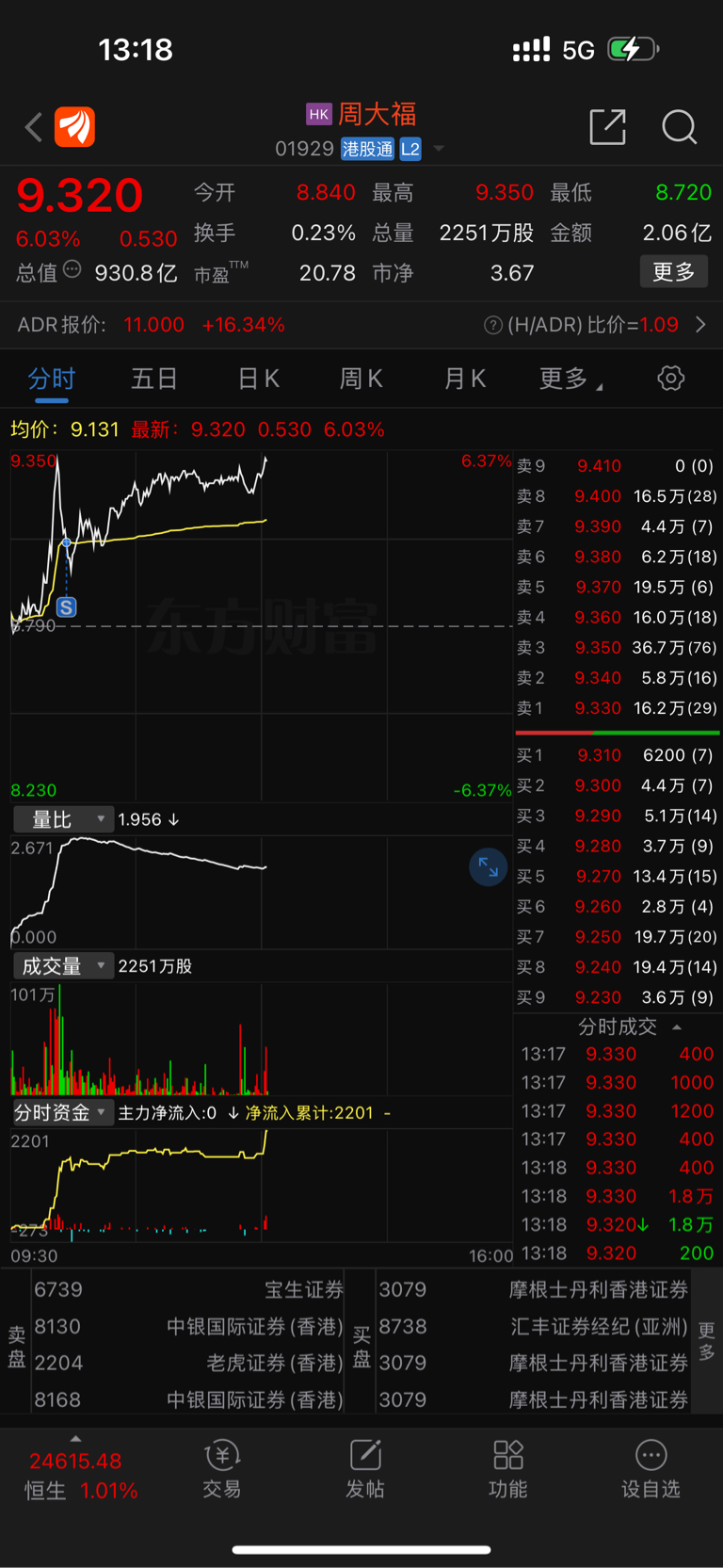 前天买了沃尔,没有起色就算了,神宇有机会再来。主战场还是港股,今天周大福卖飞了,