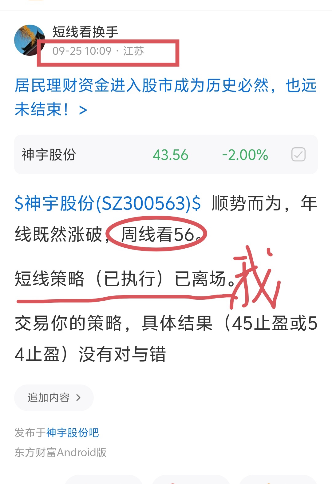 上周我是短线策略(高抛)。周线(中线)看54..交易你的策略,愿赌服输(卖掉的不