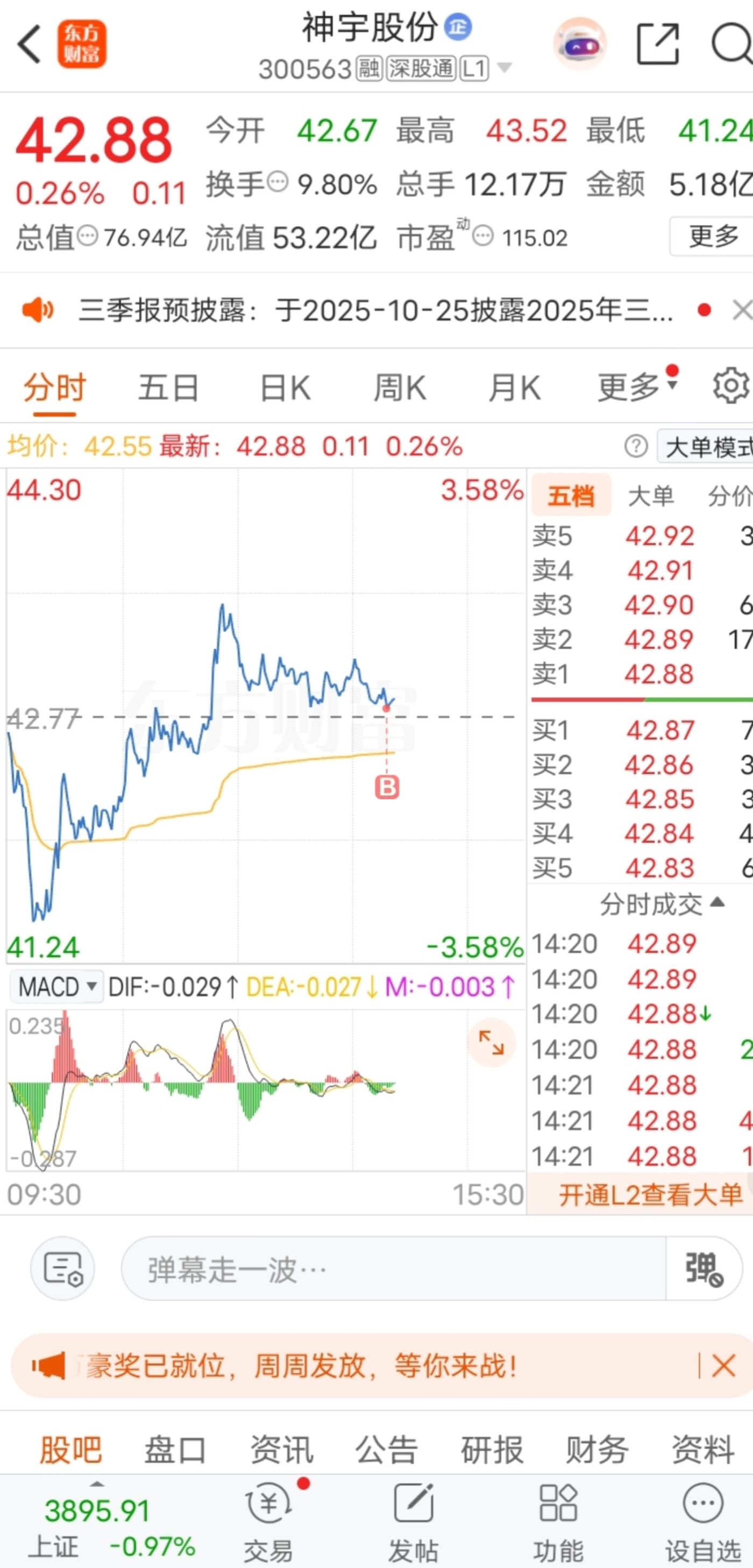尾盘选择介入个股$神宇股份(SZ300563)$ #炒股日记# #强势机会# #实盘记录# #投资干货#