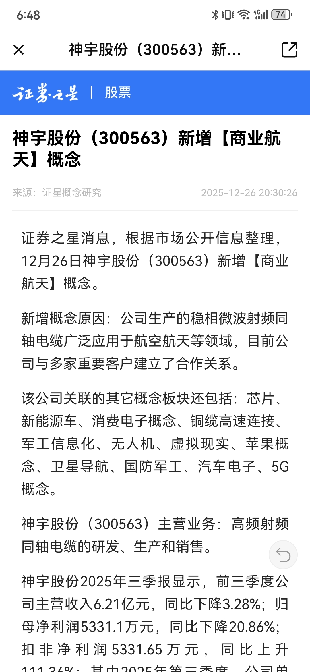 东财太滞后了公司生产的稳相微波射频同轴电缆广泛应用于航空航天等领域,目前公司与多