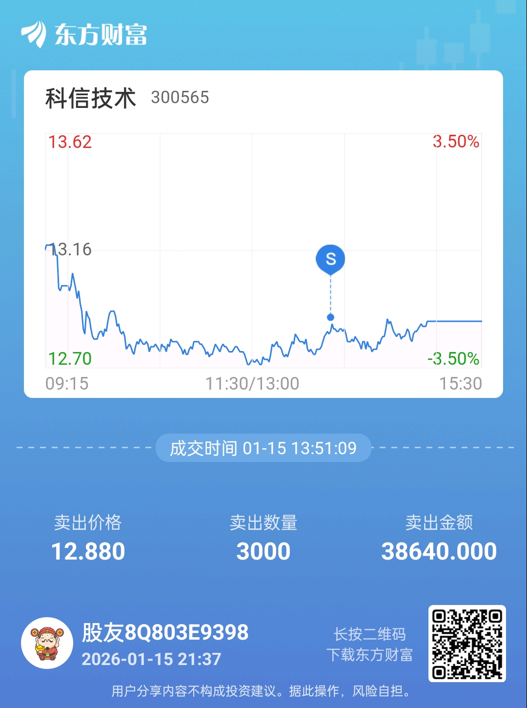 $科信技术(S今日成交股票:操作原因:老板们,我今天是走了,看看帖子上,还有没有