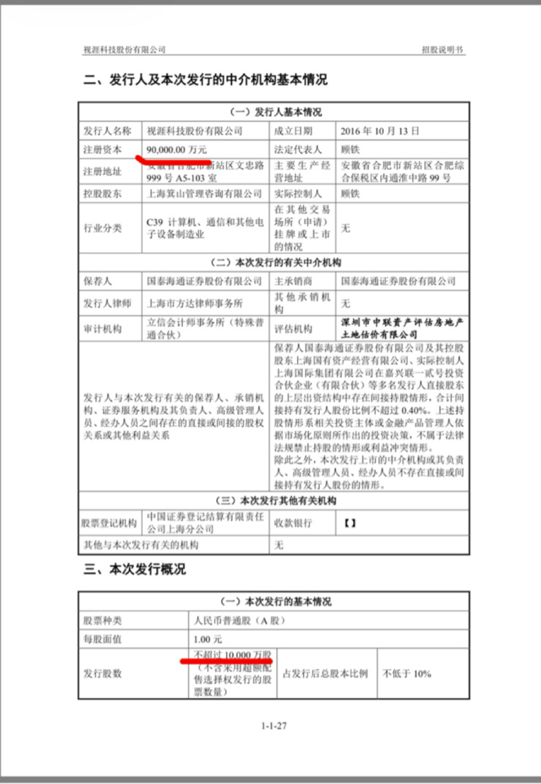视涯科技拟发行不超过1亿股募资20亿,原股本9亿股,也就是说IPO市值在200亿