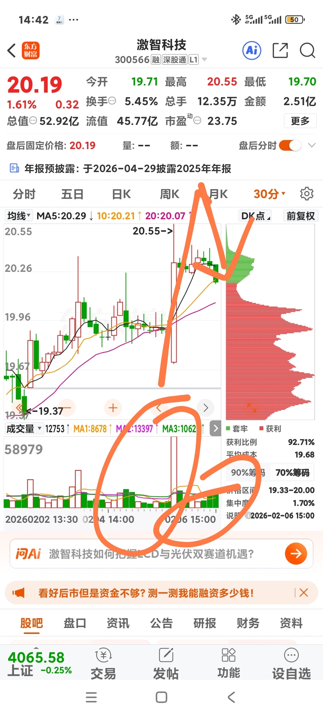$激智科技(SZ300566)$ 三十分钟涨放量跌缩量。明显的打压洗盘。哈哈!