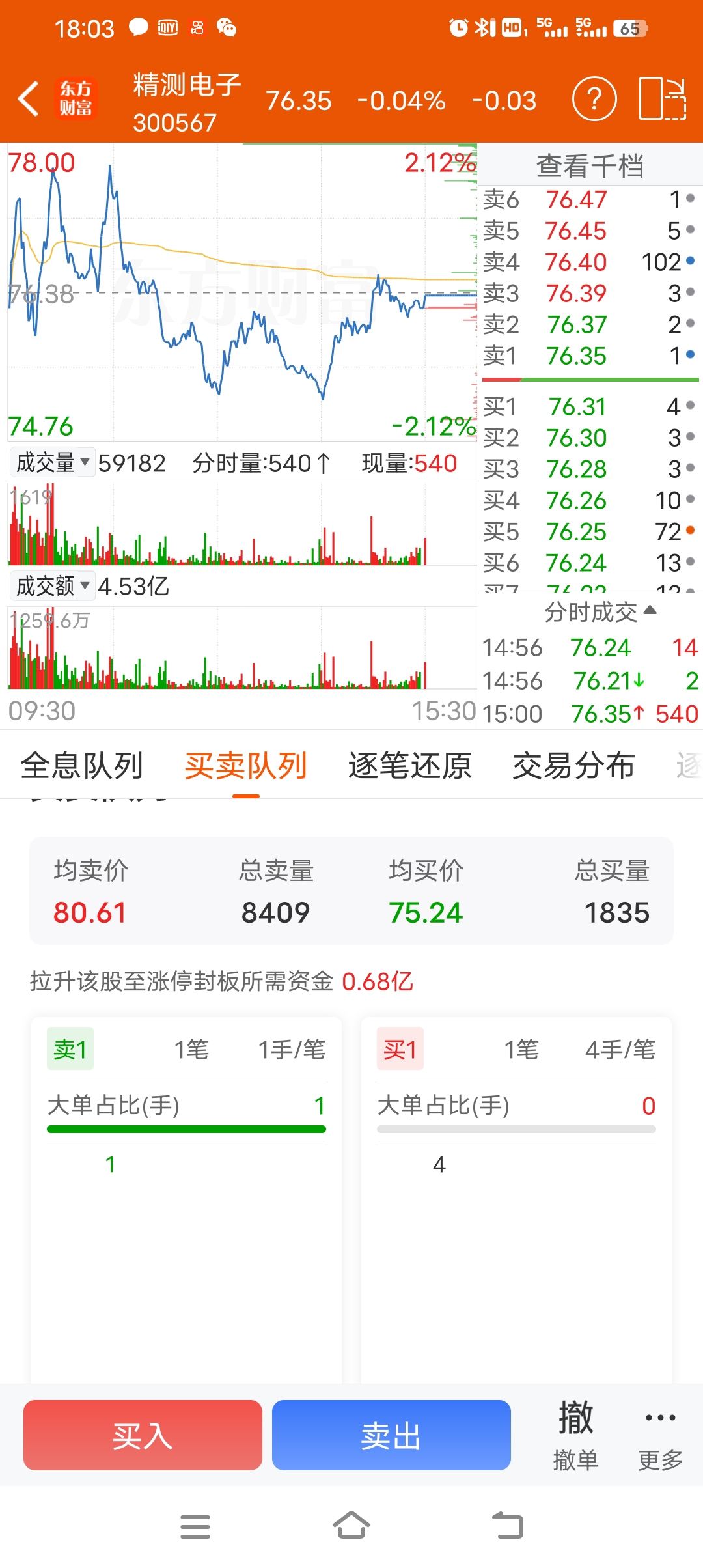 $精测电子(SZ300567)$ 早晚有一天把自己玩废了,买盘枯竭,一千多万就能把二百多亿的公司砸个跌停