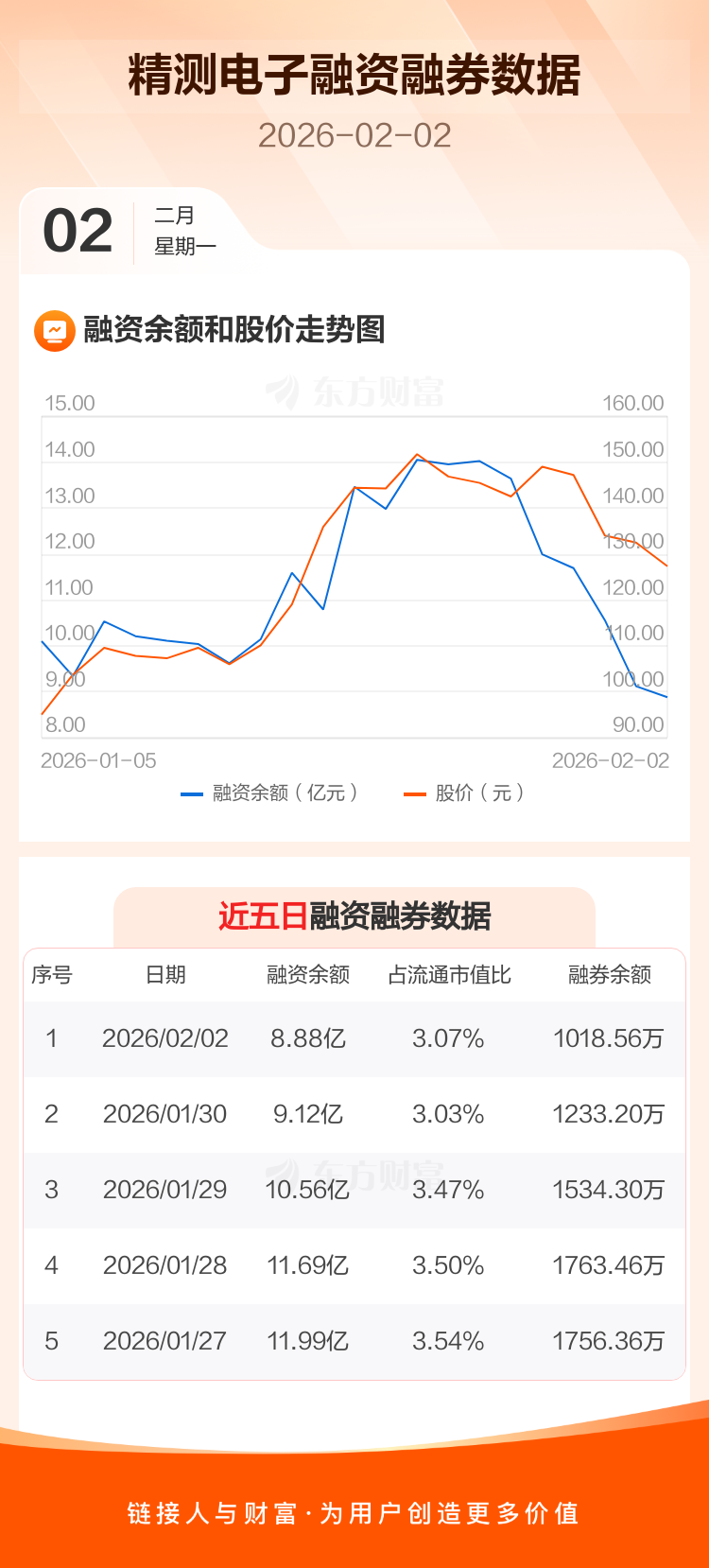 交易所最新数据显示,精测电子于2026年2月2日获融资买入1.94亿元,融资偿还2.18亿元,当日融资净偿还2358.62万元。目前,该股融资余额8.88亿,占流通市值比例为3.07%。