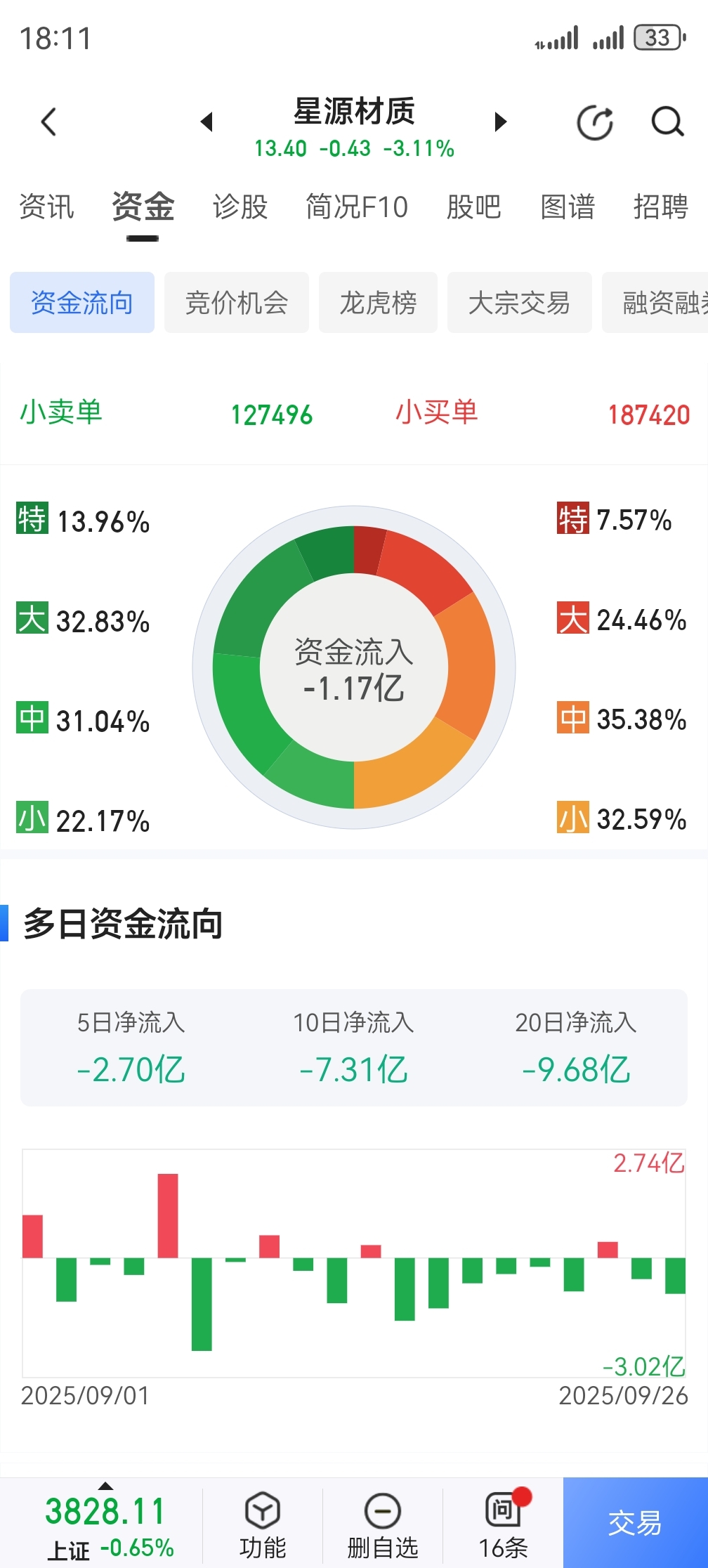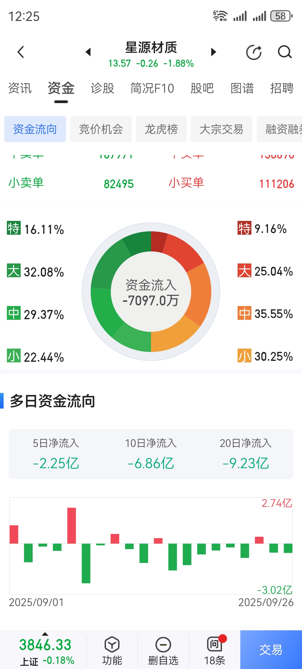 近5日大资金出逃近3亿,20天大资金出逃了近10亿