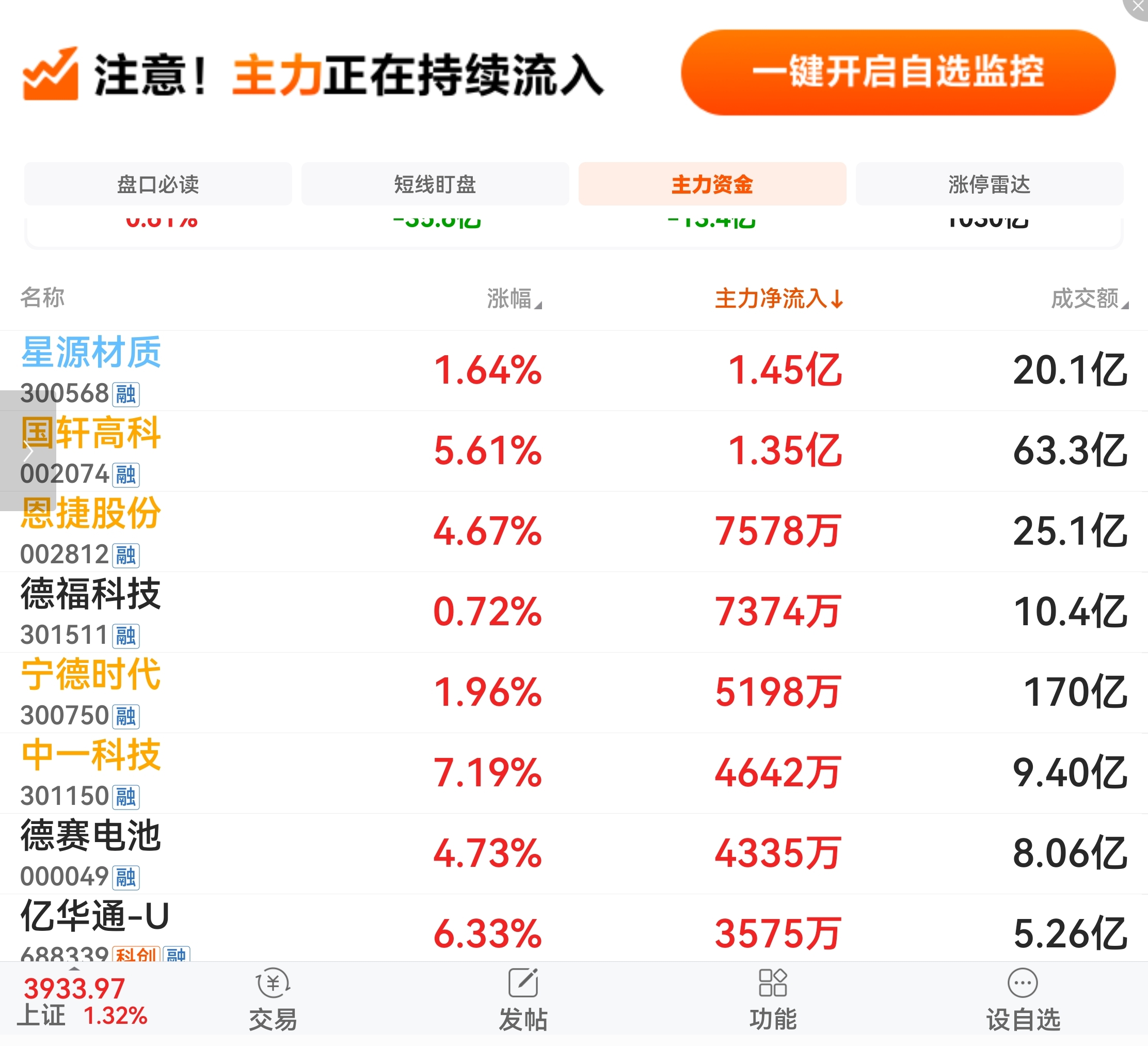 $星源材质(SZ300568)$ 今天电池版块资金流入第一,啥时候电池版块涨幅第一