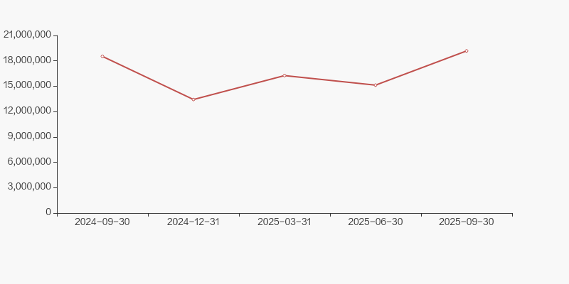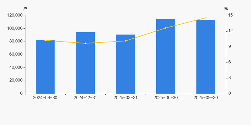 截至2025年9月30日,公司最新总股本为13.42亿股,其中流通股本为12.14亿股。户均持有流通股数量由上期的1.05万股上升至1.07万股,户均流通市值15.56万元。