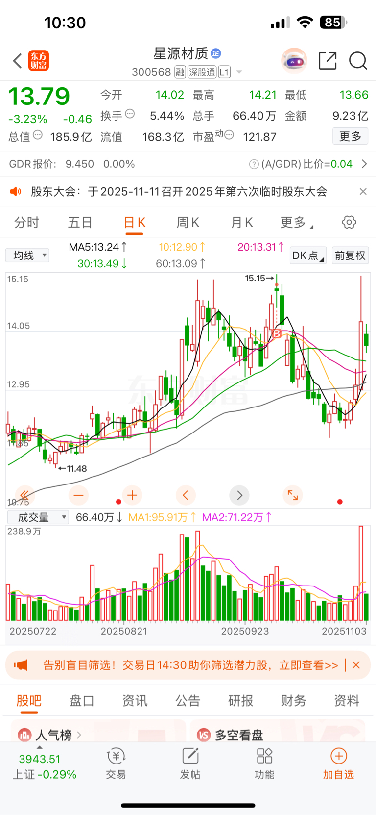 $星源材质(SZ300568)$ 周五回本没跑,又套10个点了,还是不能好看你一眼,永远都不争气。