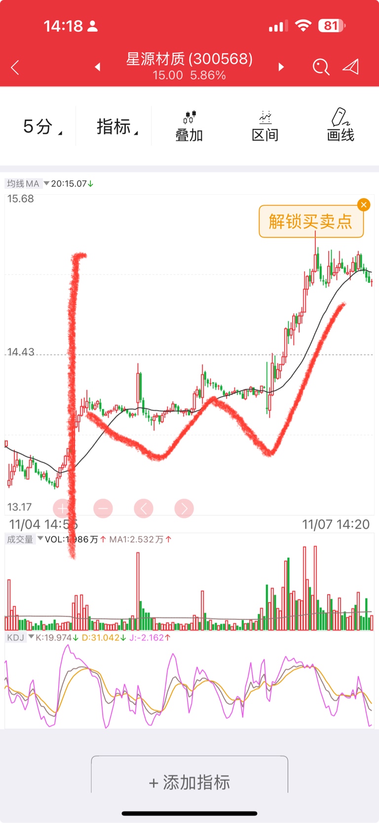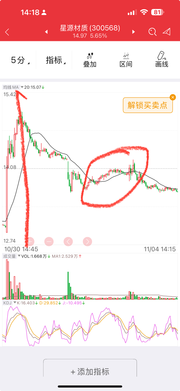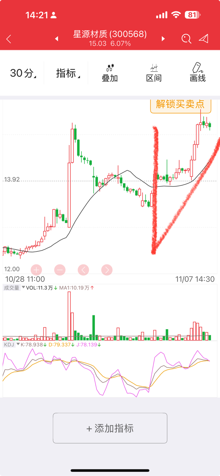#炒股日记# $星源材质(SZ300568)$ 我在5号下午13.05分突破时候,加了仓位,在60分钟11月6号又加了仓位,现在是四分之三,因为在尝试我这次研究的小级别周期率的相互影响,所以没有完全满仓。不过现在看来还行