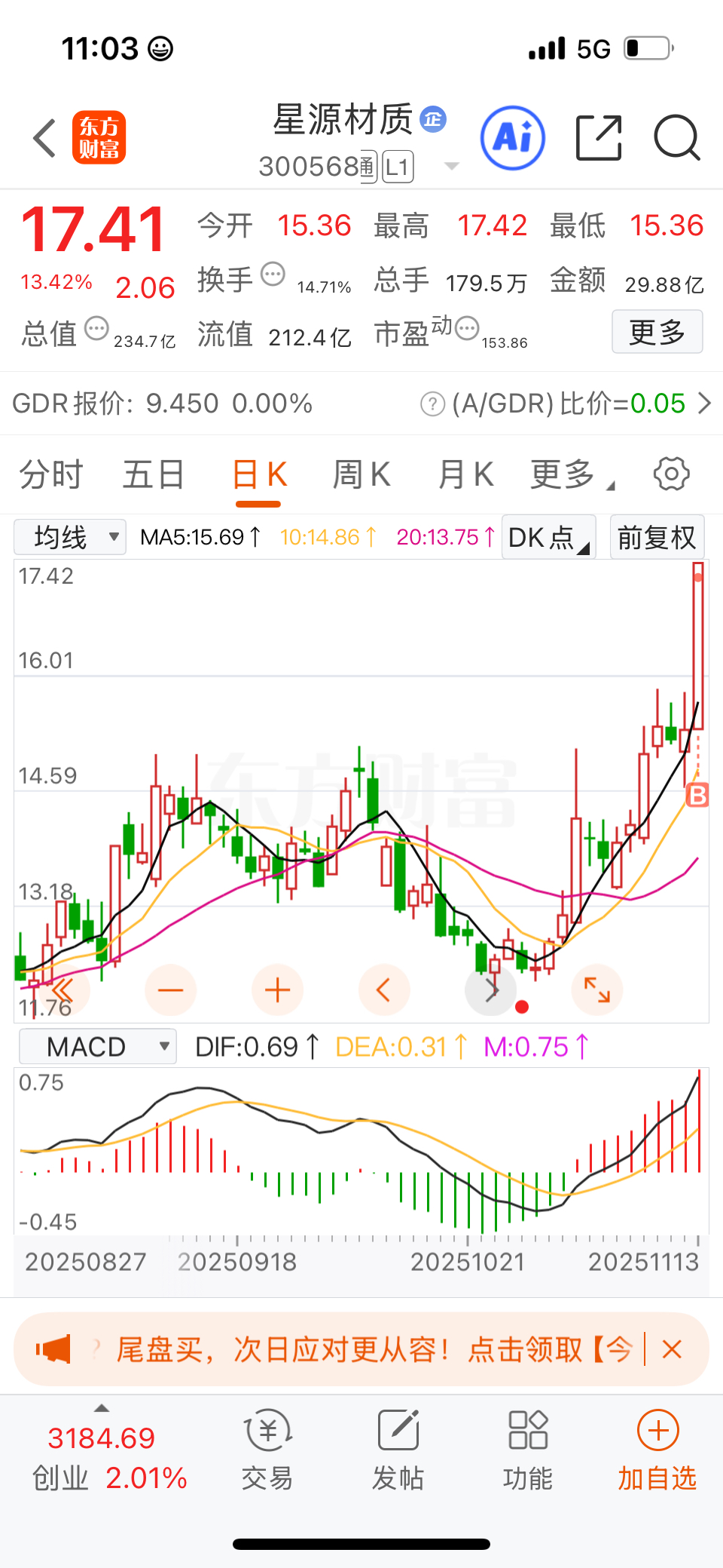 $星源材质(SZ300568)$ 头铁上了,以后帐户只买三个股