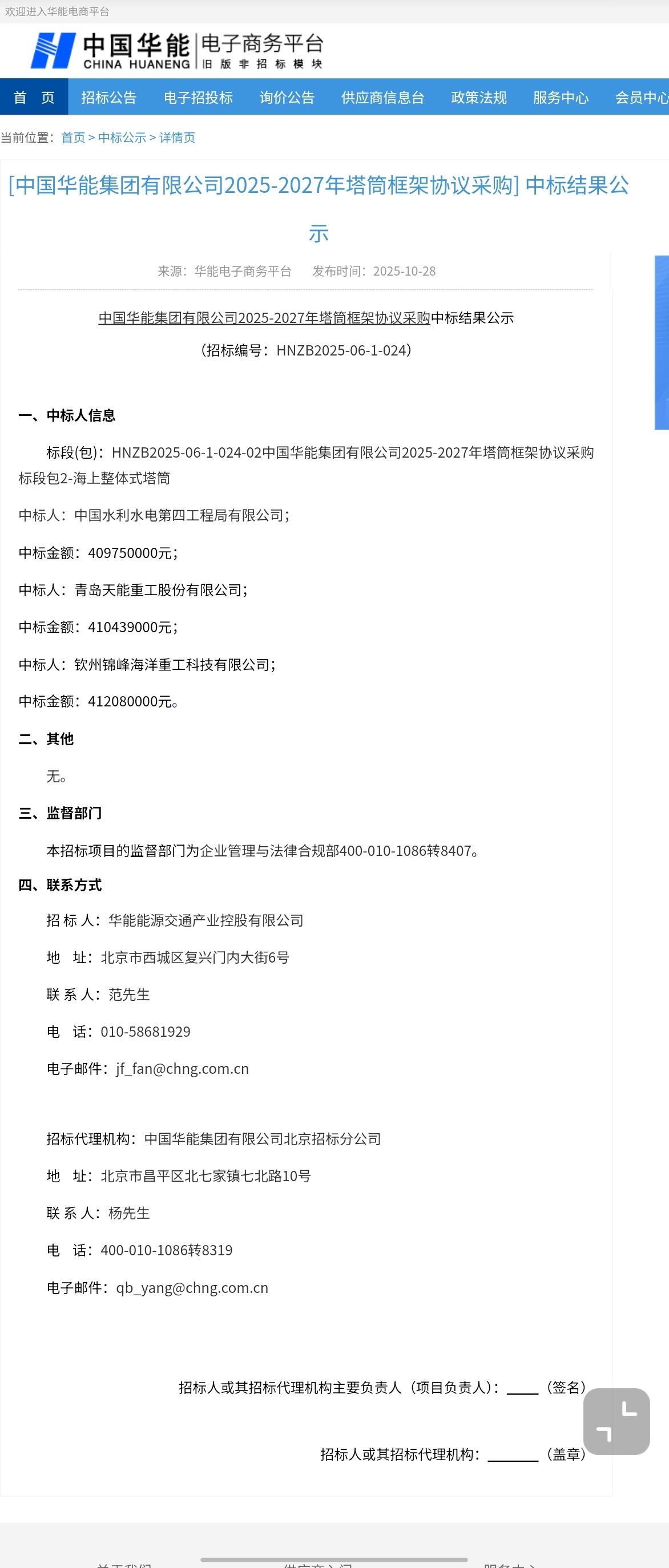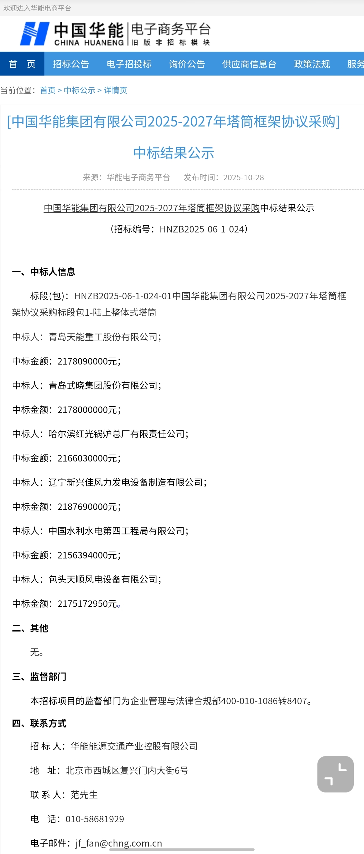 中标情况一览