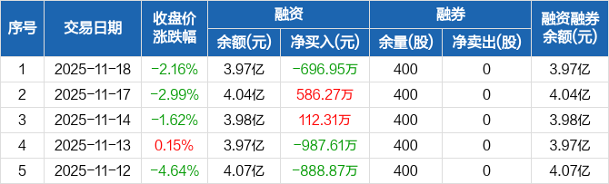 天能重工:融资净偿还696.95万元,融资余额3.97亿元(11-18)