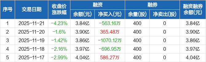 天能重工:融资净偿还563.16万元,融资余额3.84亿元(11-21)