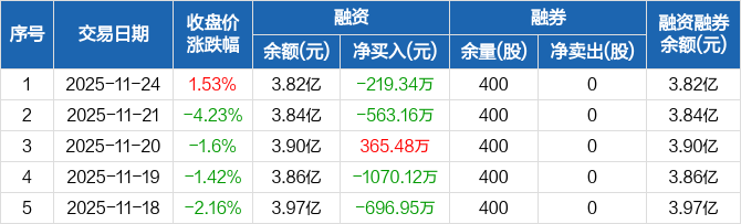 天能重工:融资净偿还219.34万元,融资余额3.82亿元(11-24)