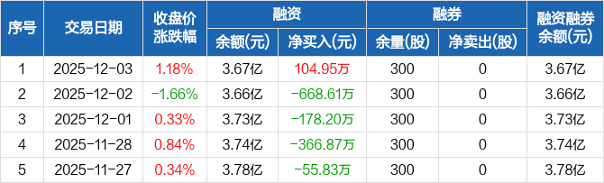天能重工:融资净买入104.95万元,融资余额3.67亿元(12-03)