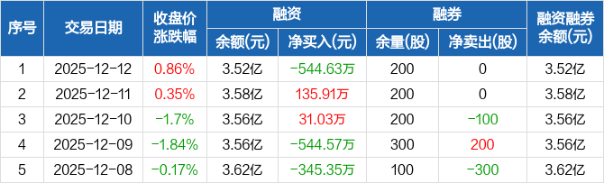 天能重工:融资净偿还544.63万元,融资余额3.52亿元(12-12)