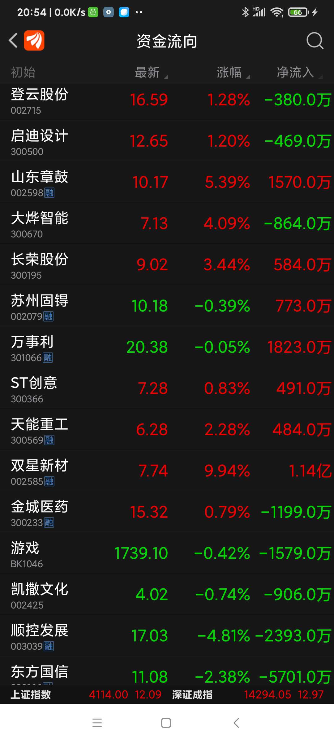 天能重工等八股今日资金净流入一览。