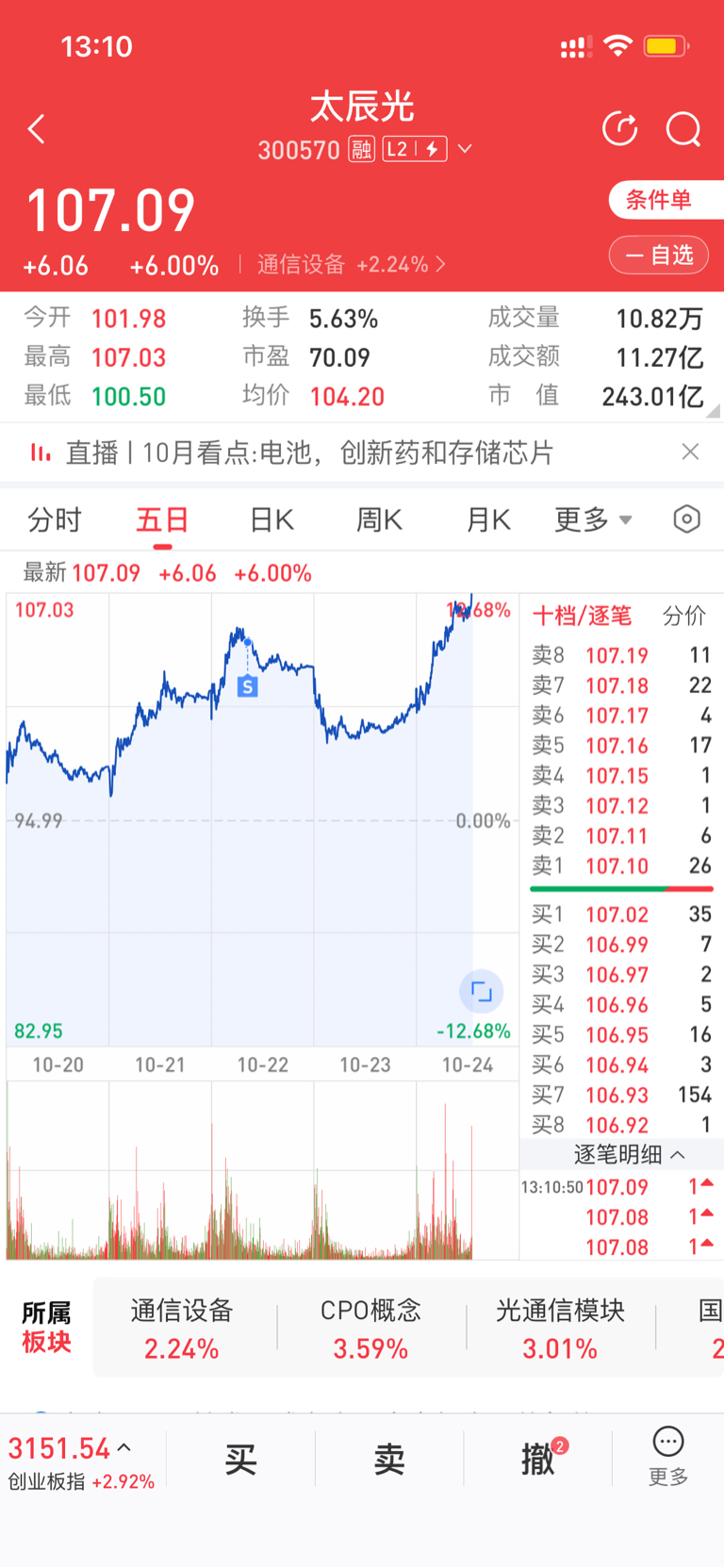$太辰光(SZ300570)$ 什么情况,刚割肉,你就飞?!#炒股日记# #复盘记录# #实盘记录#