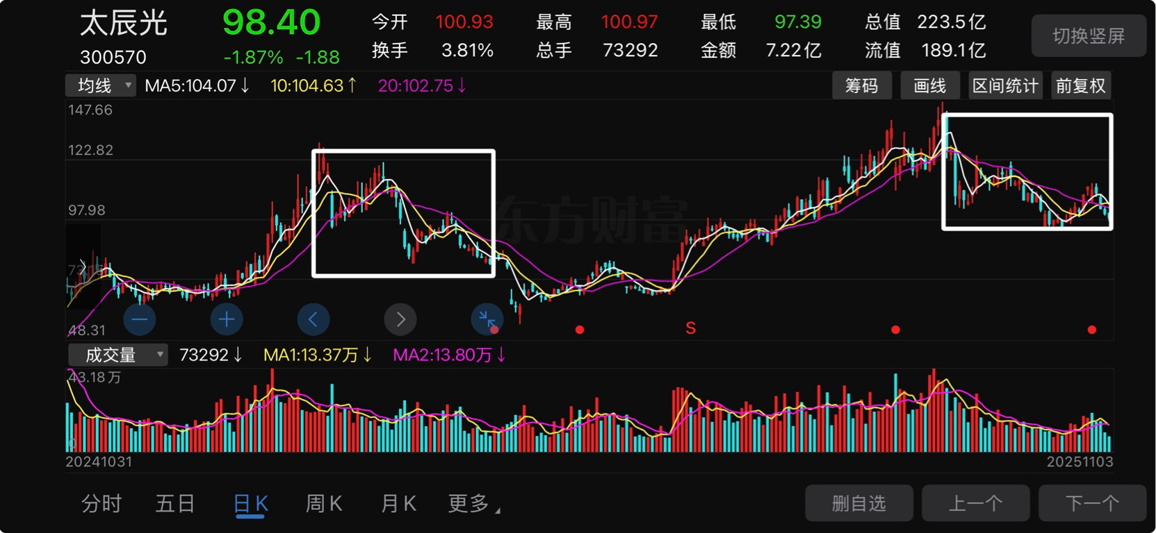 $太辰光(SZ300570)$ 不说一模一样吧,也是99%的相似度了,足见尿性,今天T出去了,等再阴跌几天考虑下进场