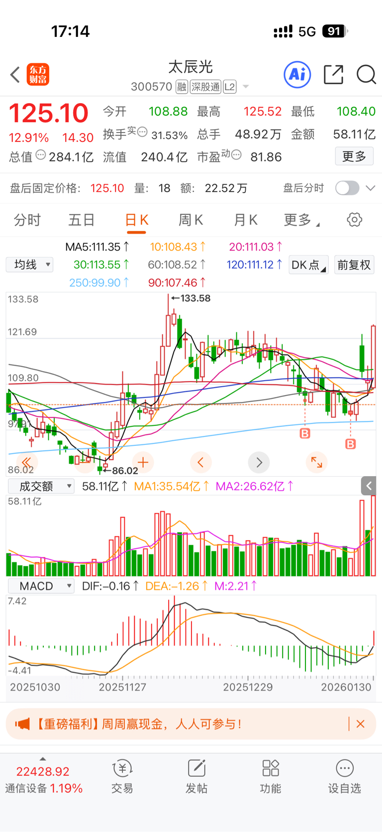 $太辰光(SZ300570)$ 昨天想加仓,但是没钱了,联特已经卖了,CPO总是让人喜欢