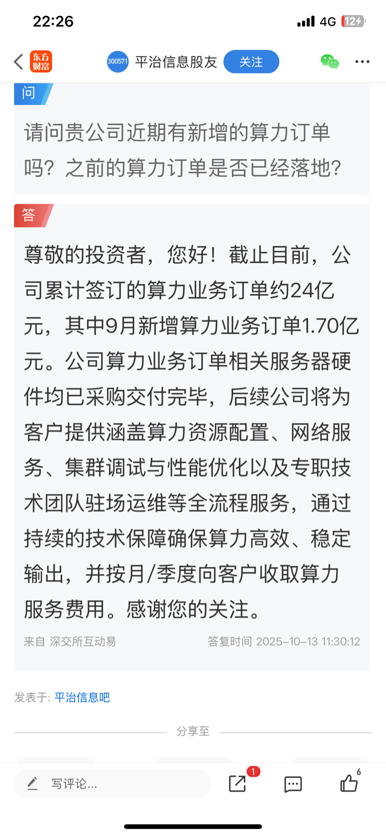 $平治信息(SZ300571)$ 20多亿的算力订单马上要进入收获期了