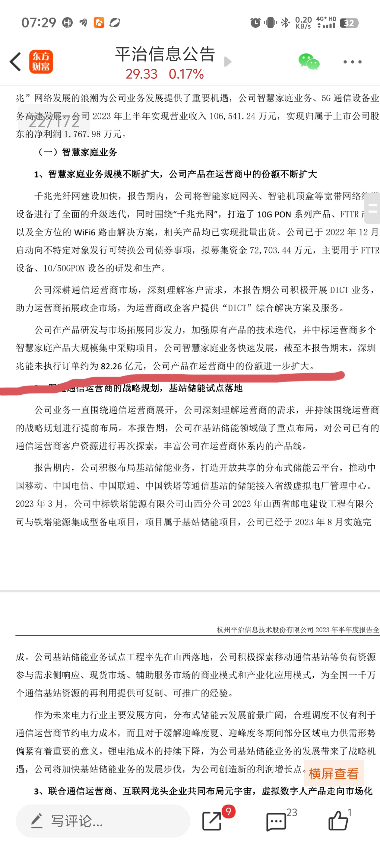 $平治信息(SZ300571)$ 23年半年报里提到的82亿,这都两年了还没落地,这公司有实话嘛?