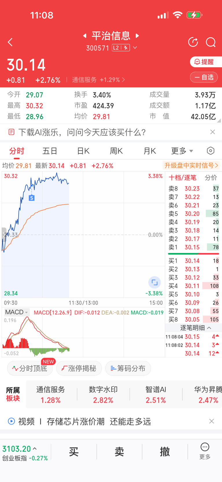 $平治信息(SZ300571)$ 量太小了…早上卖了…一直横盘不跌我觉得没戏的多...下去吧再买回来...