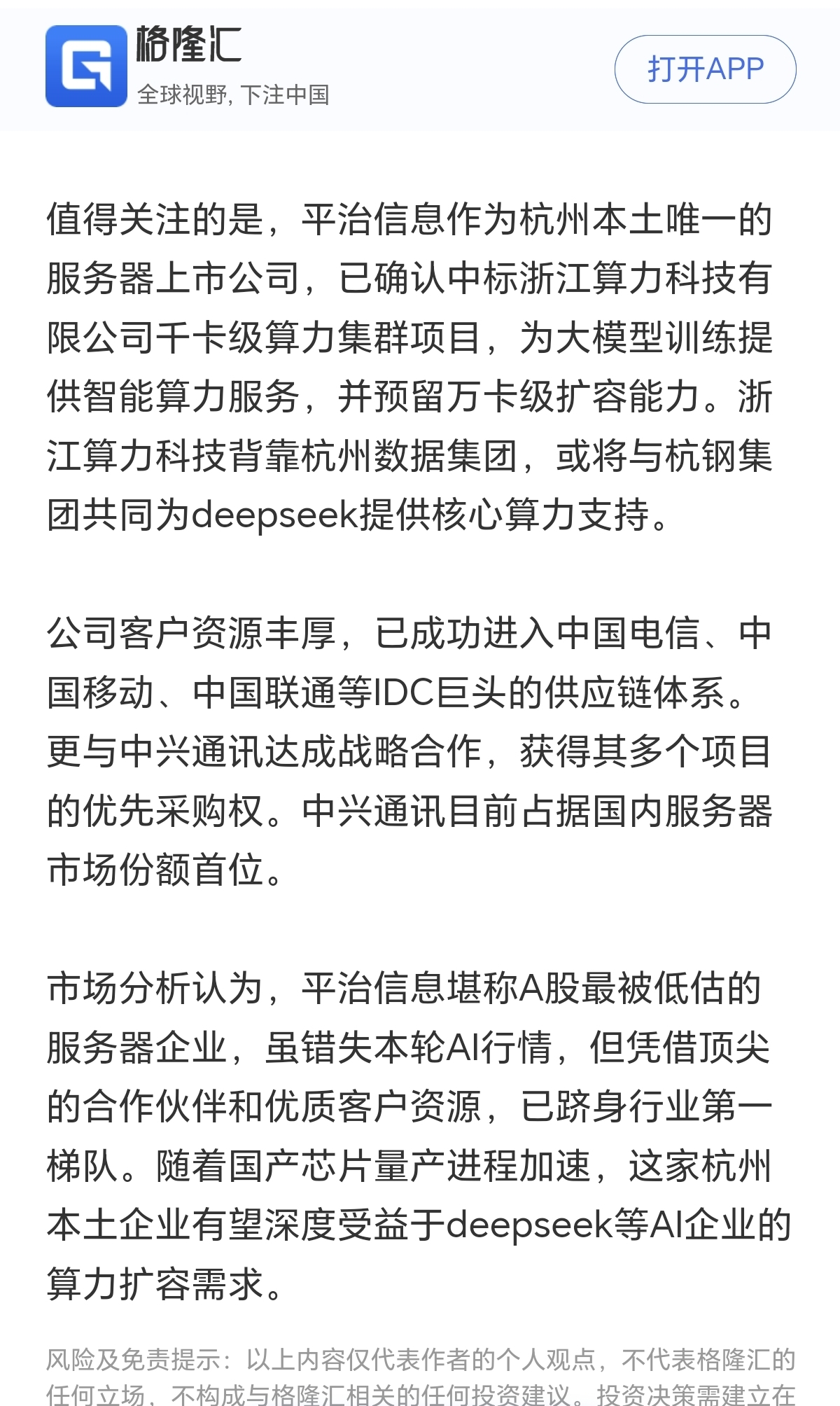 $平治信息(SZ300571)$ 杭州唯一服务器,值得期待!