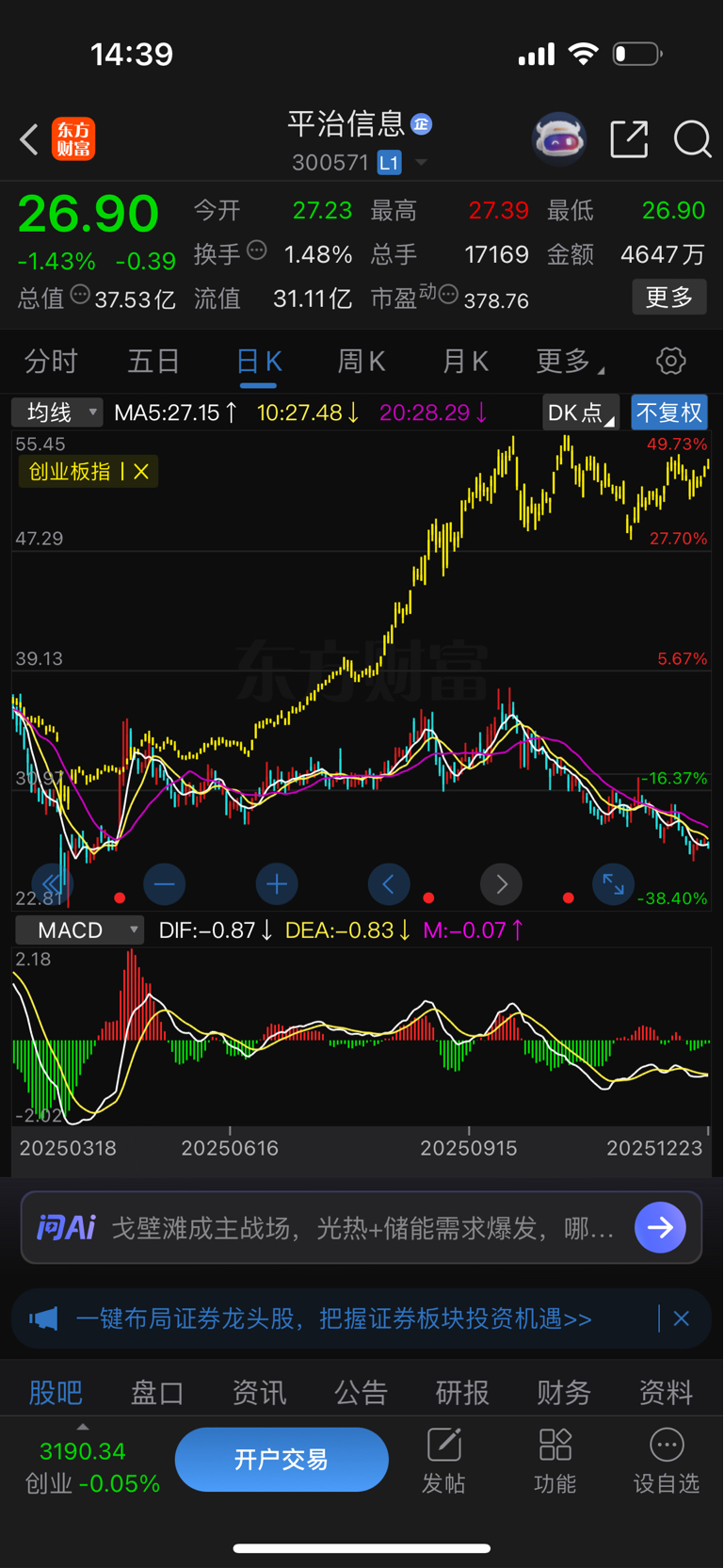 $平治信息(SZ300571)$ 这就是咱们的股和大盘的差距