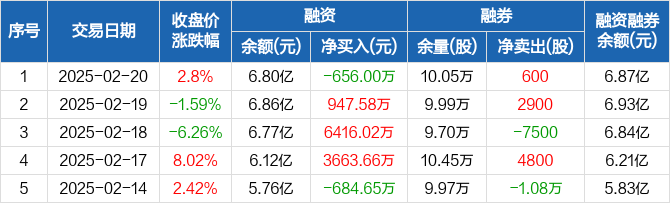 兴齐眼药:融资净偿还656万元,融资余额6.8亿元(02-20)