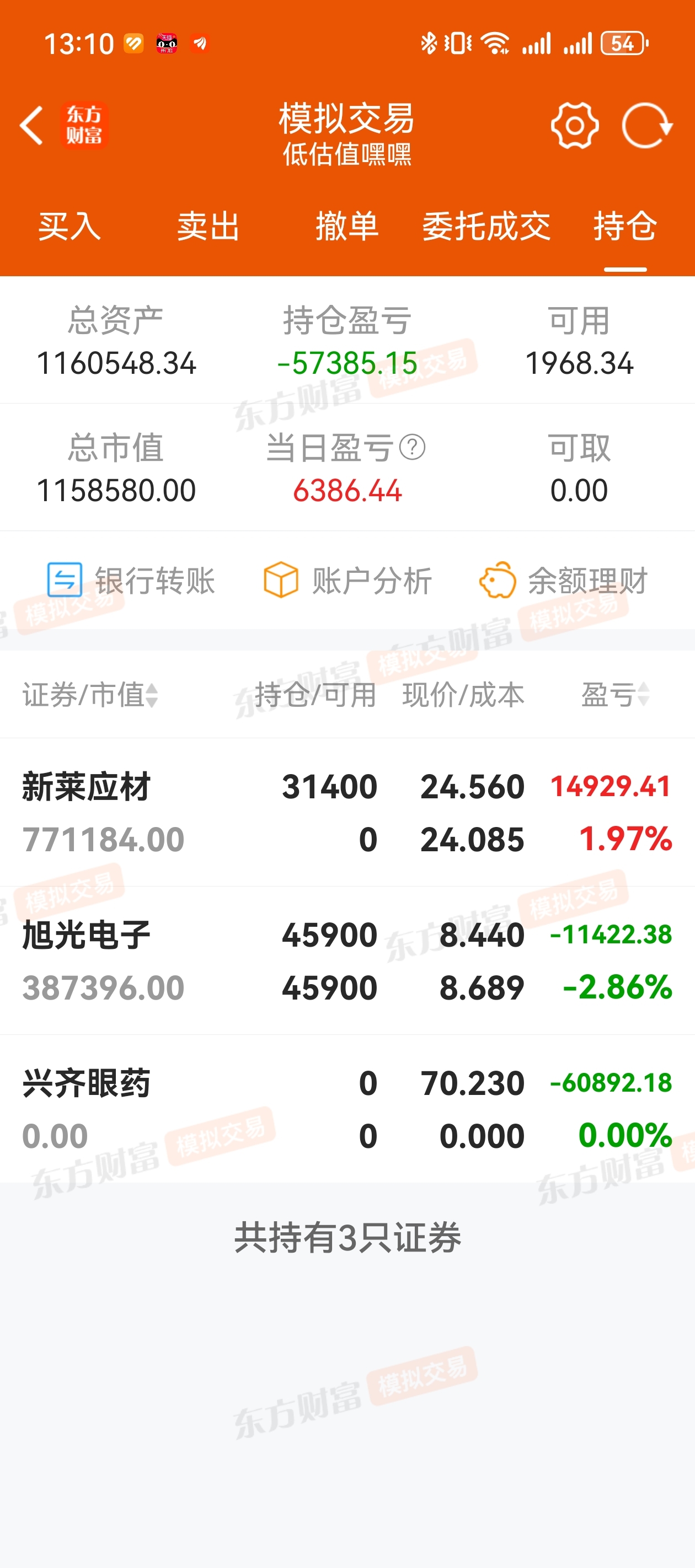 行情不对,减仓!虽说是模拟,但是你真是不行