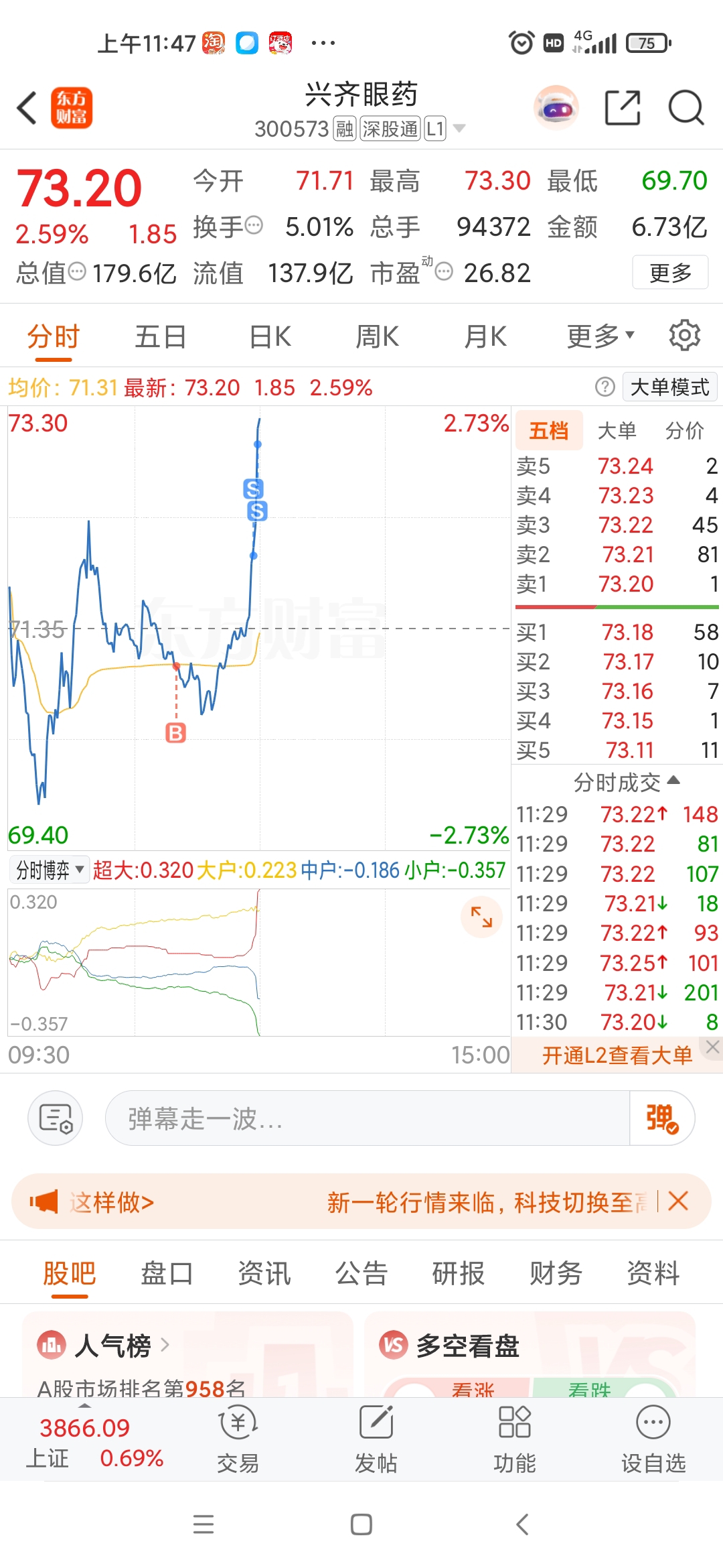 $兴齐眼药(SZ300573)$ 才T到3个点,感觉卖飞了
