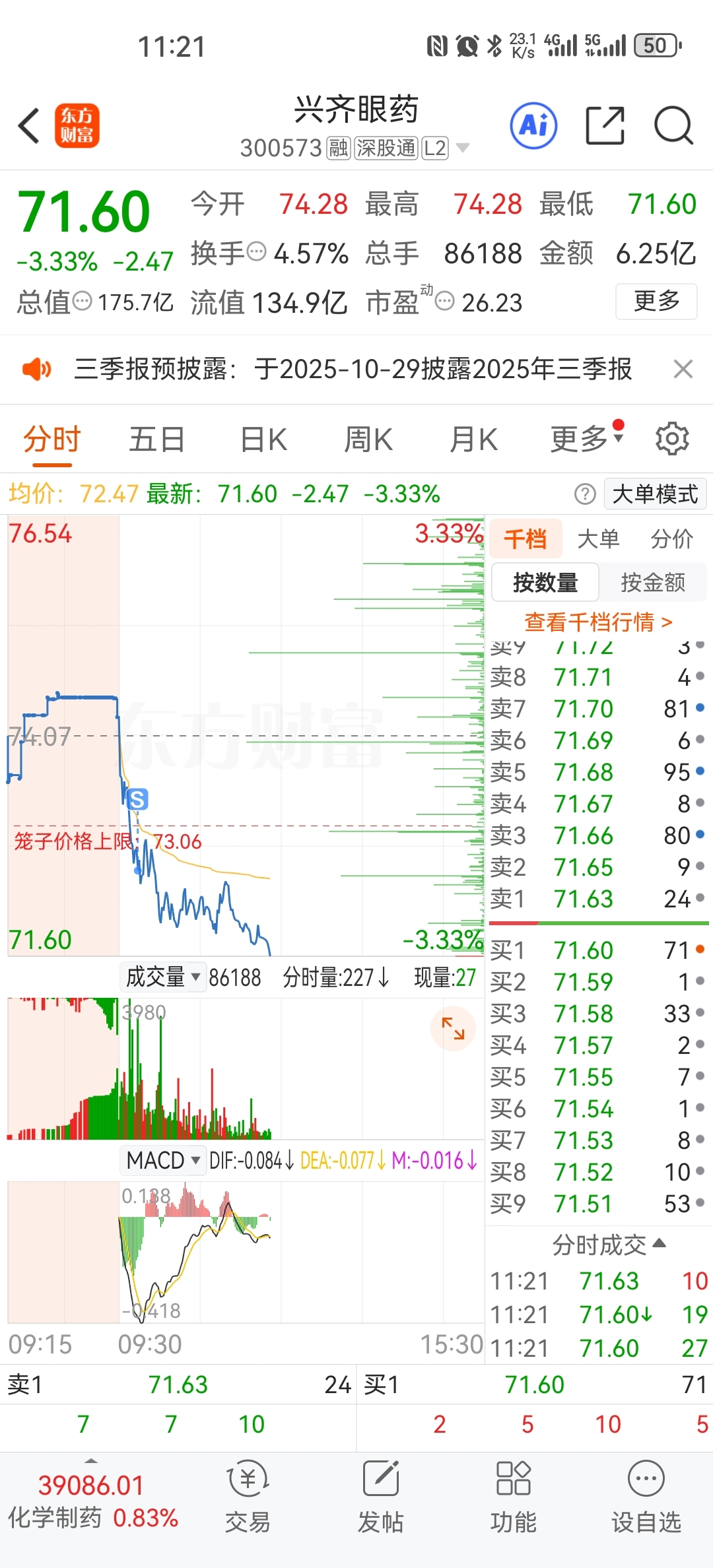 $兴齐眼药(SZ300573)$ 到5个点,就接回来