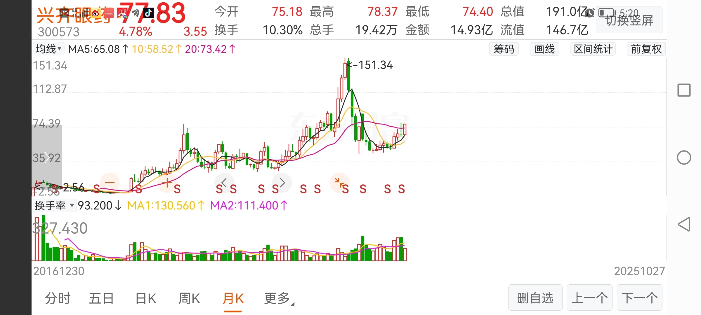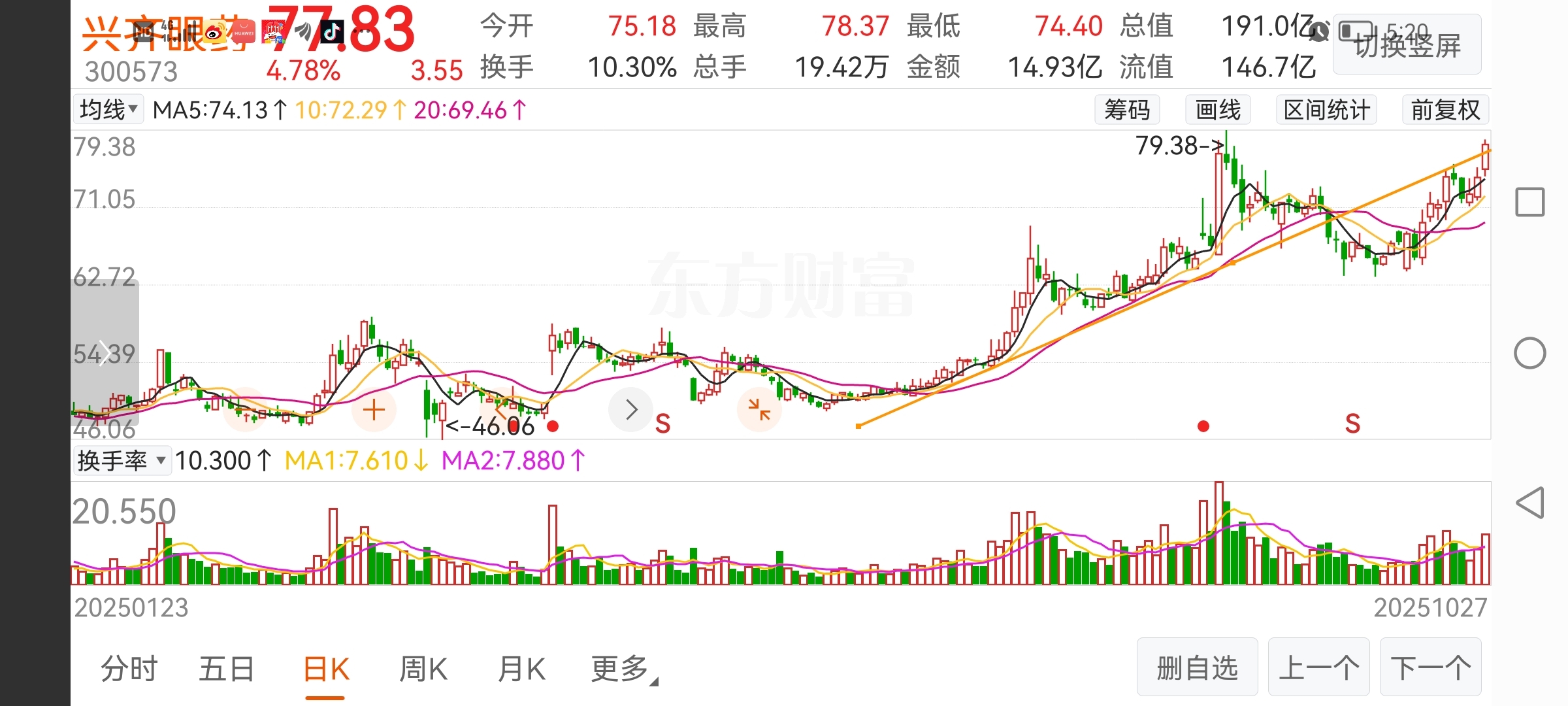 日线观察,突破上升压力线,周线观察,杯柄即将突破,黄金买点;月线观察,长线压制线