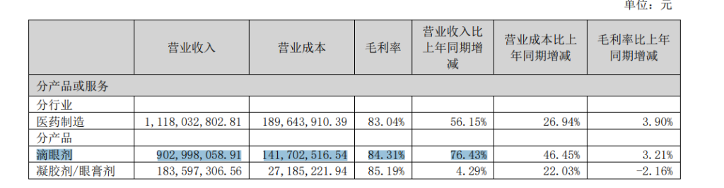 早在2024年3月,兴齐眼药的0.01%硫酸阿托品滴眼液就在国内获批上市,成为国内唯一获批用于延缓儿童近视进展的低浓度阿托品滴眼液。得益于这款独家产品,兴齐眼药的业绩上涨明显。虽然公司并未披露0.01%阿托品滴眼液的具体销售额,但2024年财报显示,包括该产品在内的滴眼剂系列整体销售额13.66亿元,同比增长106%。2025年上半年,滴眼剂整体销售额达到9.03亿元,同比增长76%。