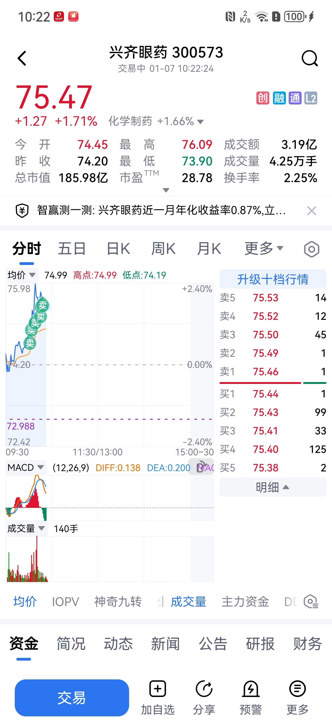 $兴齐眼药(SZ300573)$ 解套清仓了,再也不见,留下的发财
