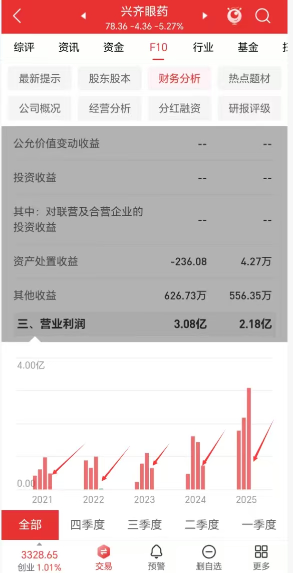 $兴齐眼药(SZ300573)$ 四季度保守50%至200%的增长你们说不及预期?他每年四季度都比前三季度差,而且去年四季度盈利4000多万,按照6.6亿-7.49亿算,今年四季度利润保守6000多万至一亿5千万,不少了,坚定持有!越跌越买!