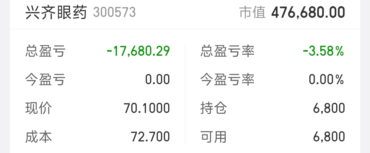 $兴齐眼药(SZ300573)$ 下周择机加大仓位
