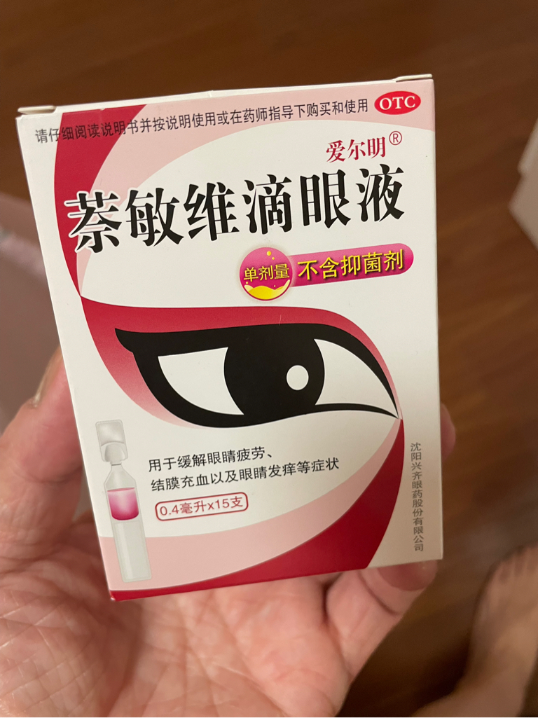 今天在家附近的五洲通大药房买了一盒兴齐眼药家的爱尔明滴眼液解,是缓解眼疲劳的,我一直在用一个叫七叶洋什么的滴眼液,今天试试这个,药房说这个比七叶洋好。我问她这款滴眼液卖的好不好,她说挺好的,每月都能卖10盒8盒的,33.80元一盒,15只。她说缓解眼疲劳的药水太多,它家算卖的好的。