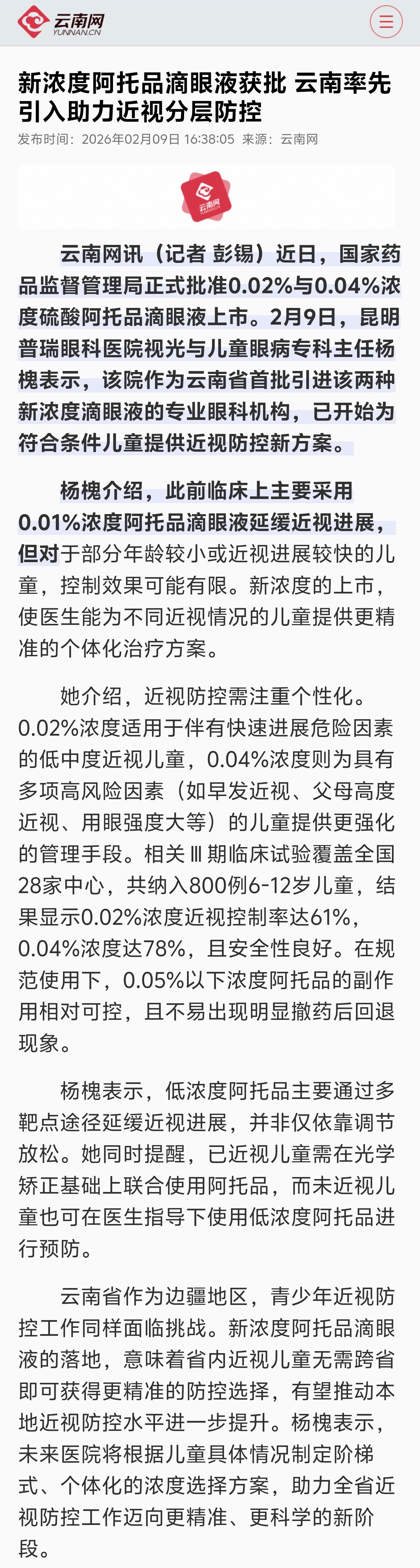 目前0.02%、0.04%浓度阿托品已在全国各医院逐步铺货,随着线下医疗机构、线