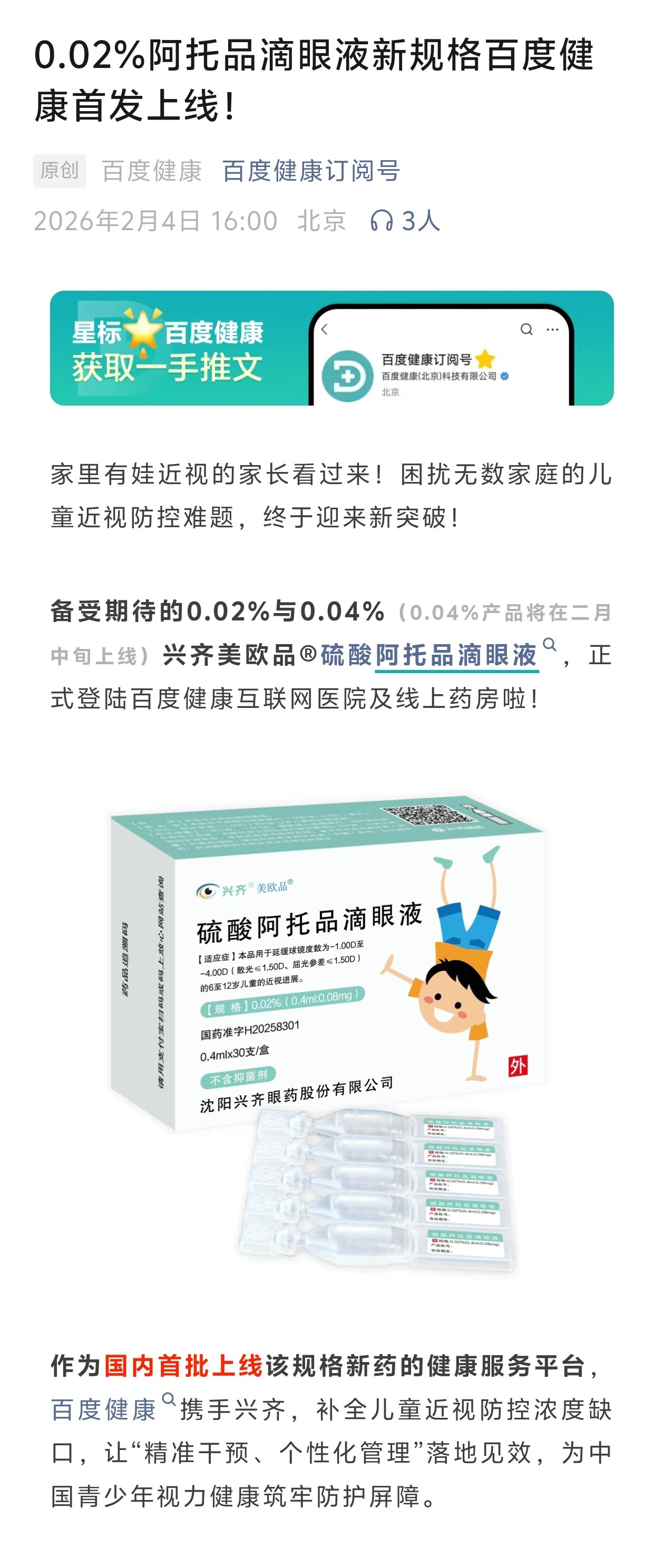 $兴齐眼药(SZ300573)$ 0.02%、0.04%阿托品铺货中...