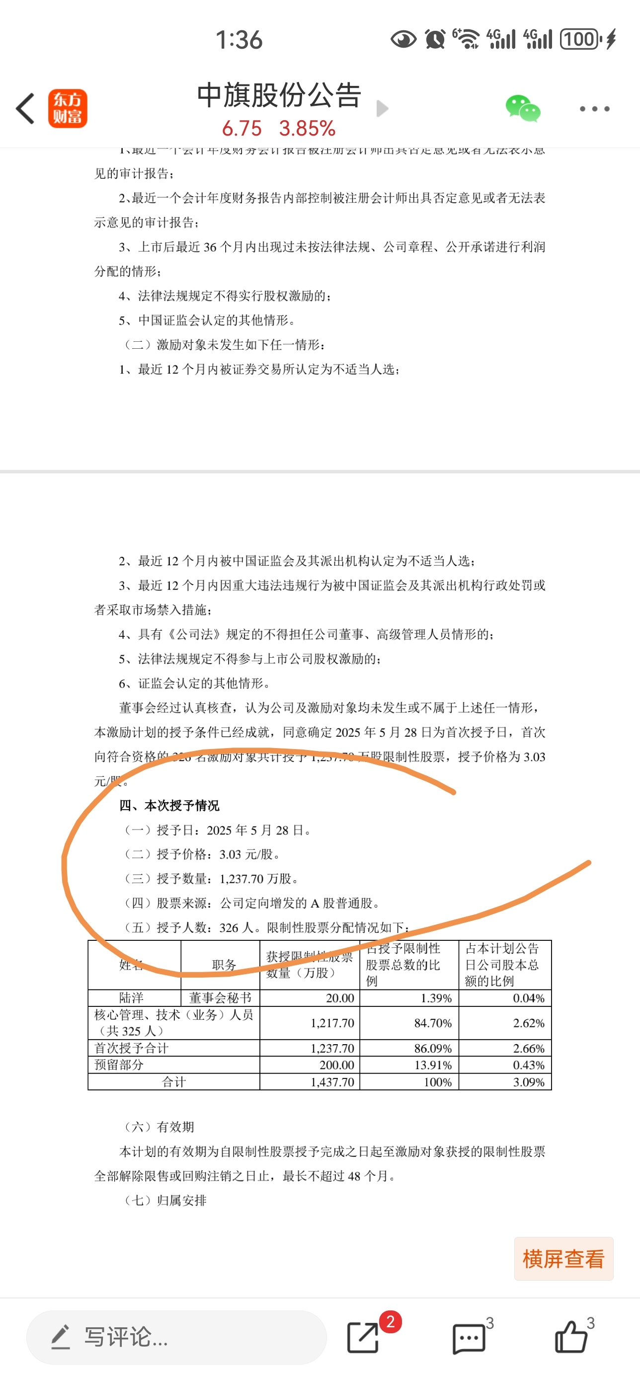 $中旗股份(SZ300575)$ 难怪后继无力,原来定增股份3%,价格才3元???逆天!!