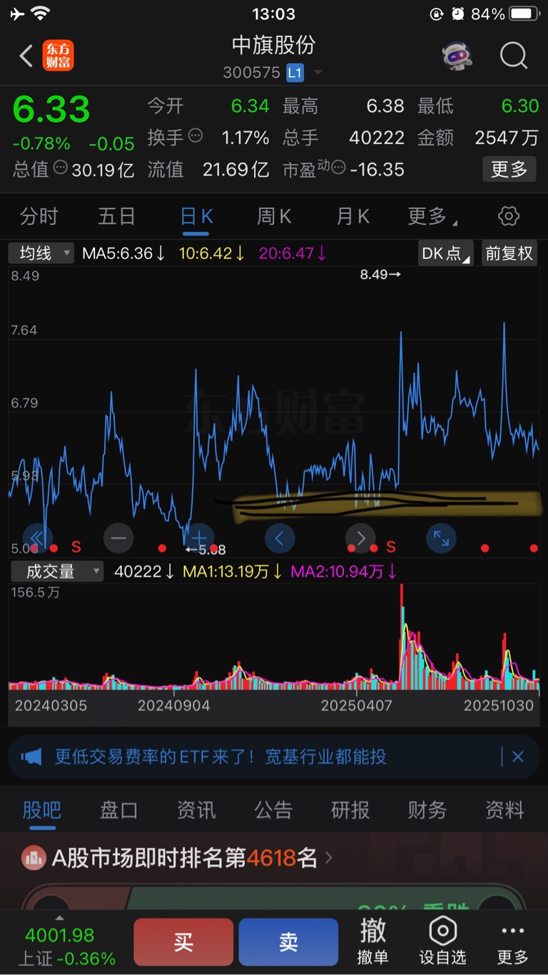 昨天8.1抄底同和药业,比中旗好的票多了。股市有云:横盘不交易。中旗亏了我283