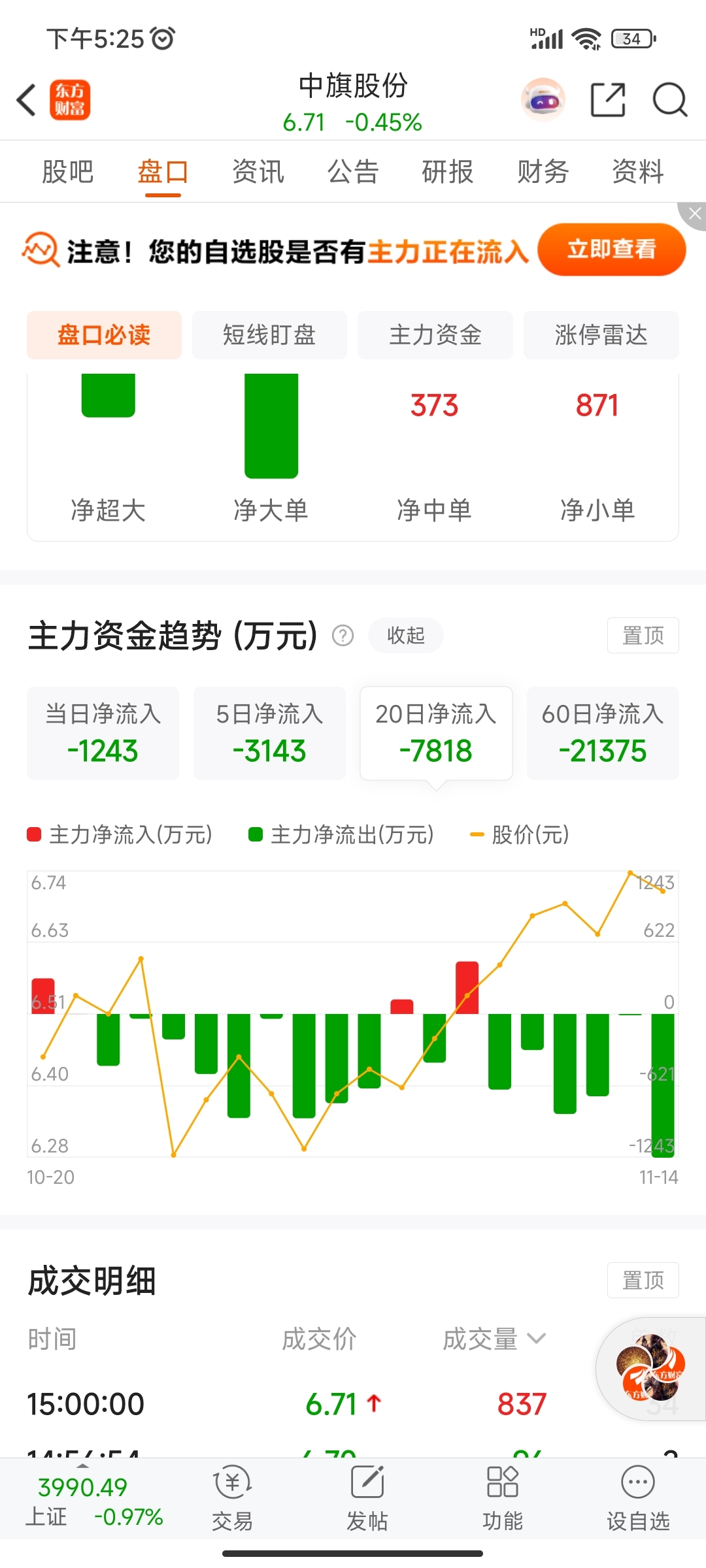 $中旗股份(SZ300575)$ 穷庄在使劲出货,散户在使劲接盘,厉害了