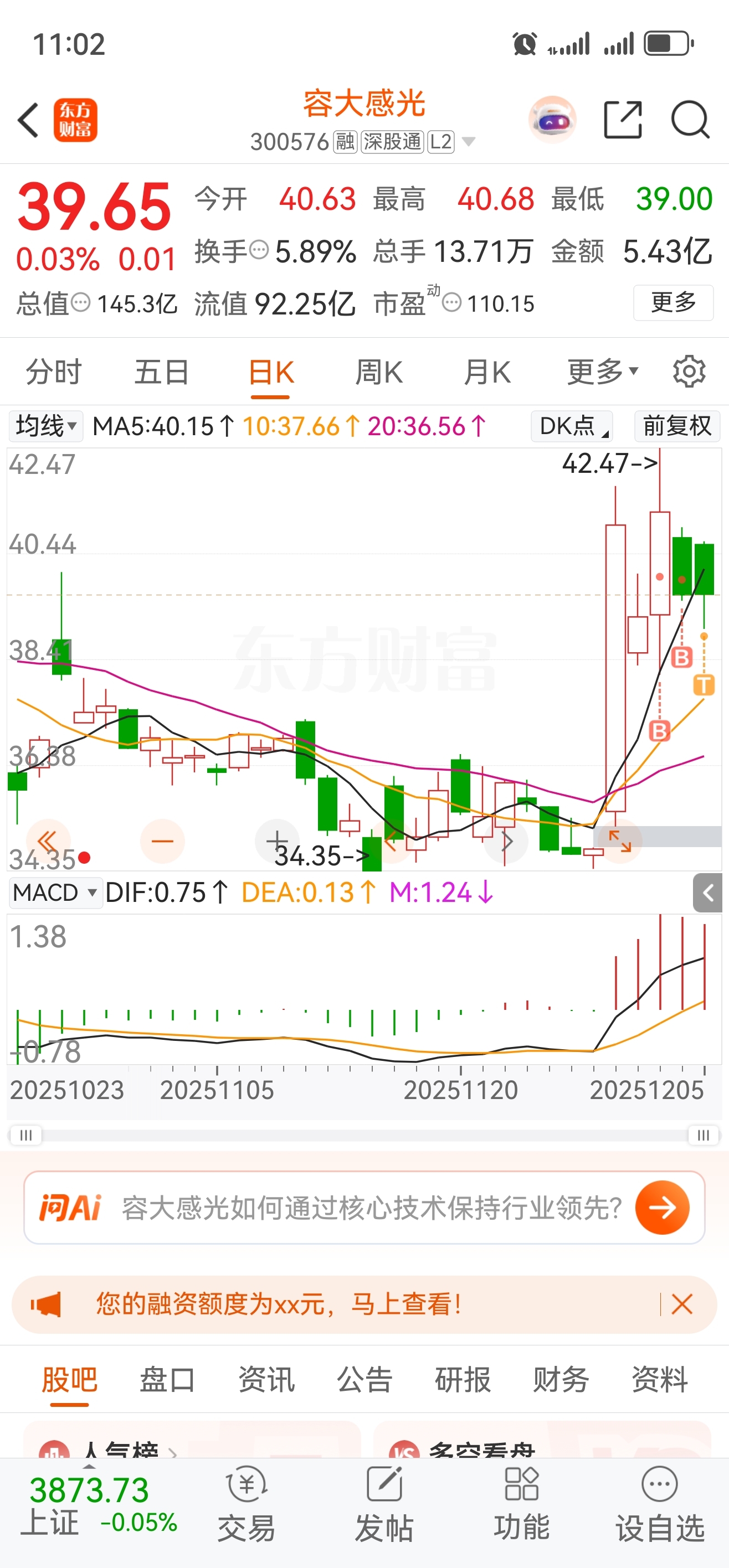 $容大感光(SZ300576)$ 你太强了